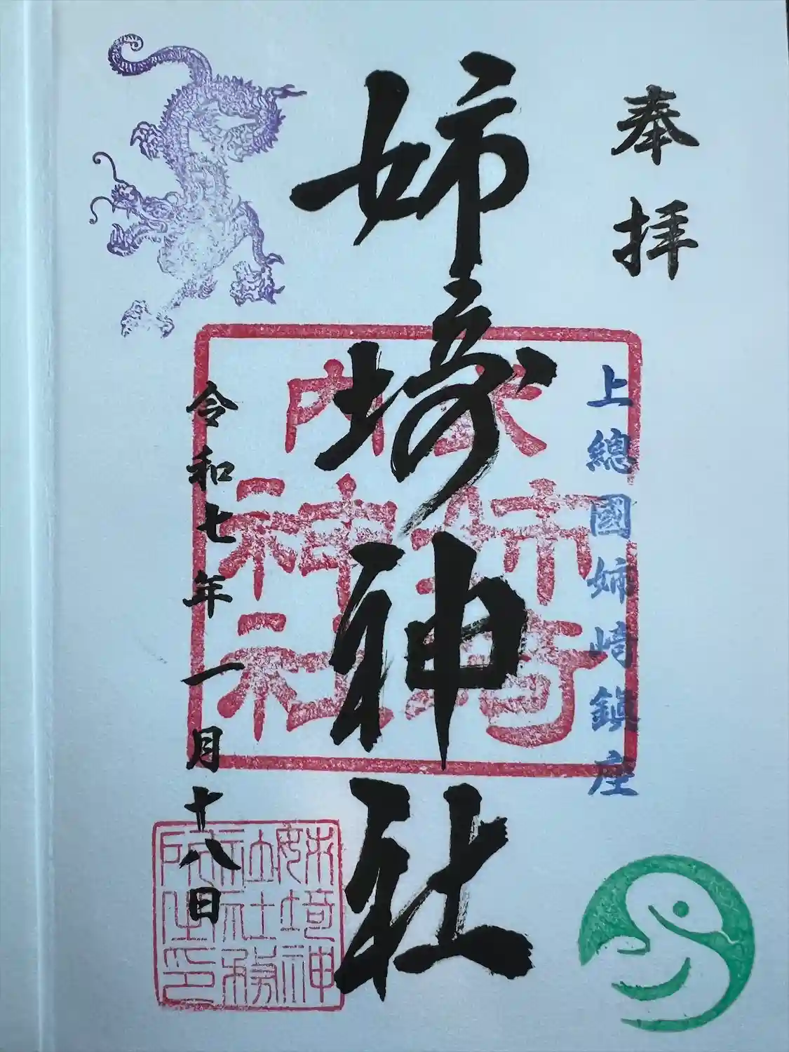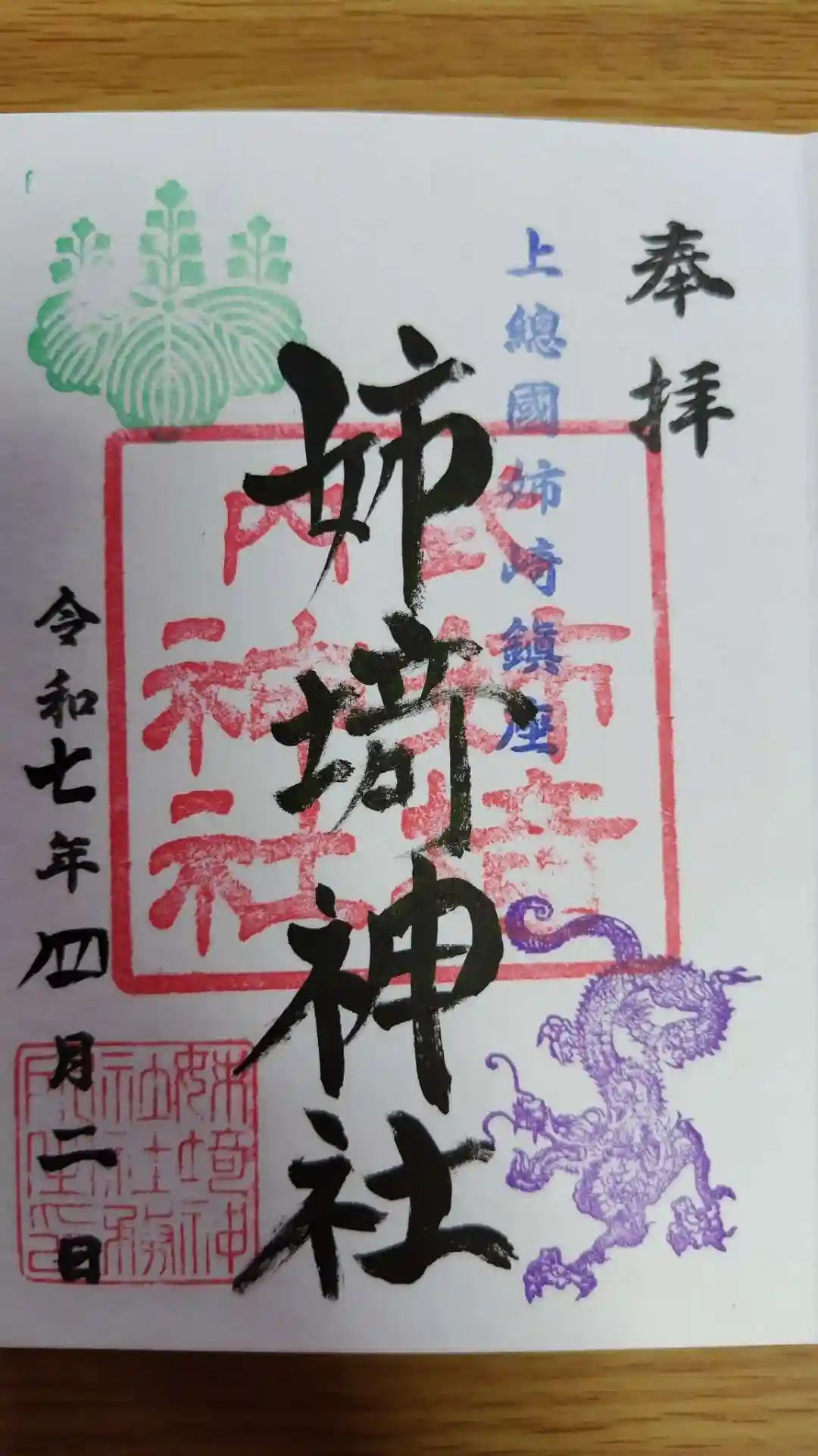 姉﨑神社の直書きの御朱印です。この他に