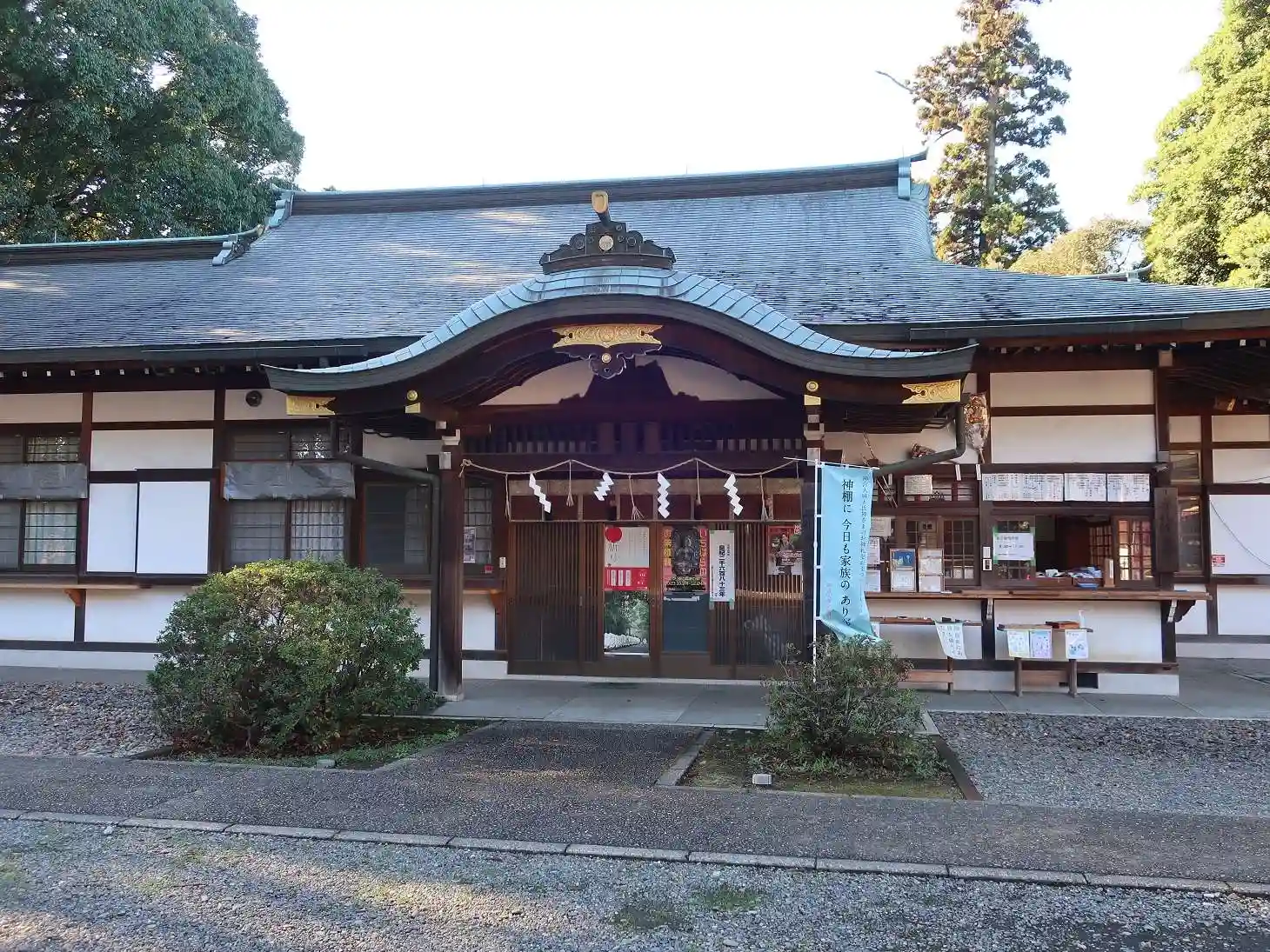 拝殿に向かって、右斜め後ろにある<社務所>。御朱印はこちら。