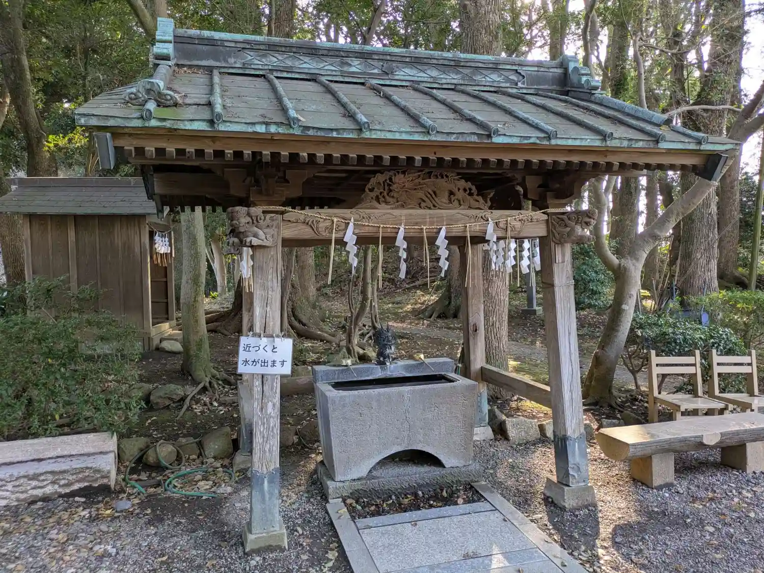 神門の近くにある手水舎