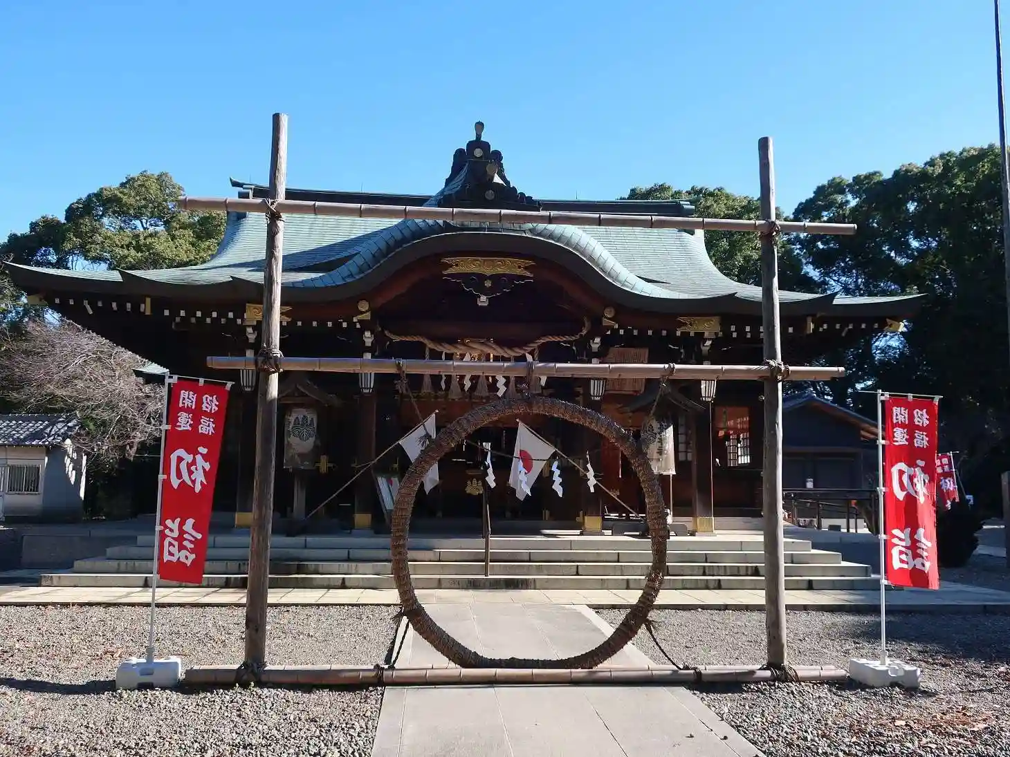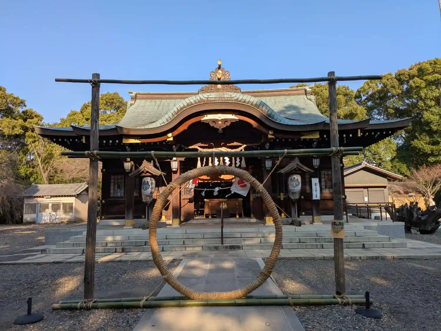 茅の輪と拝殿を別角度から