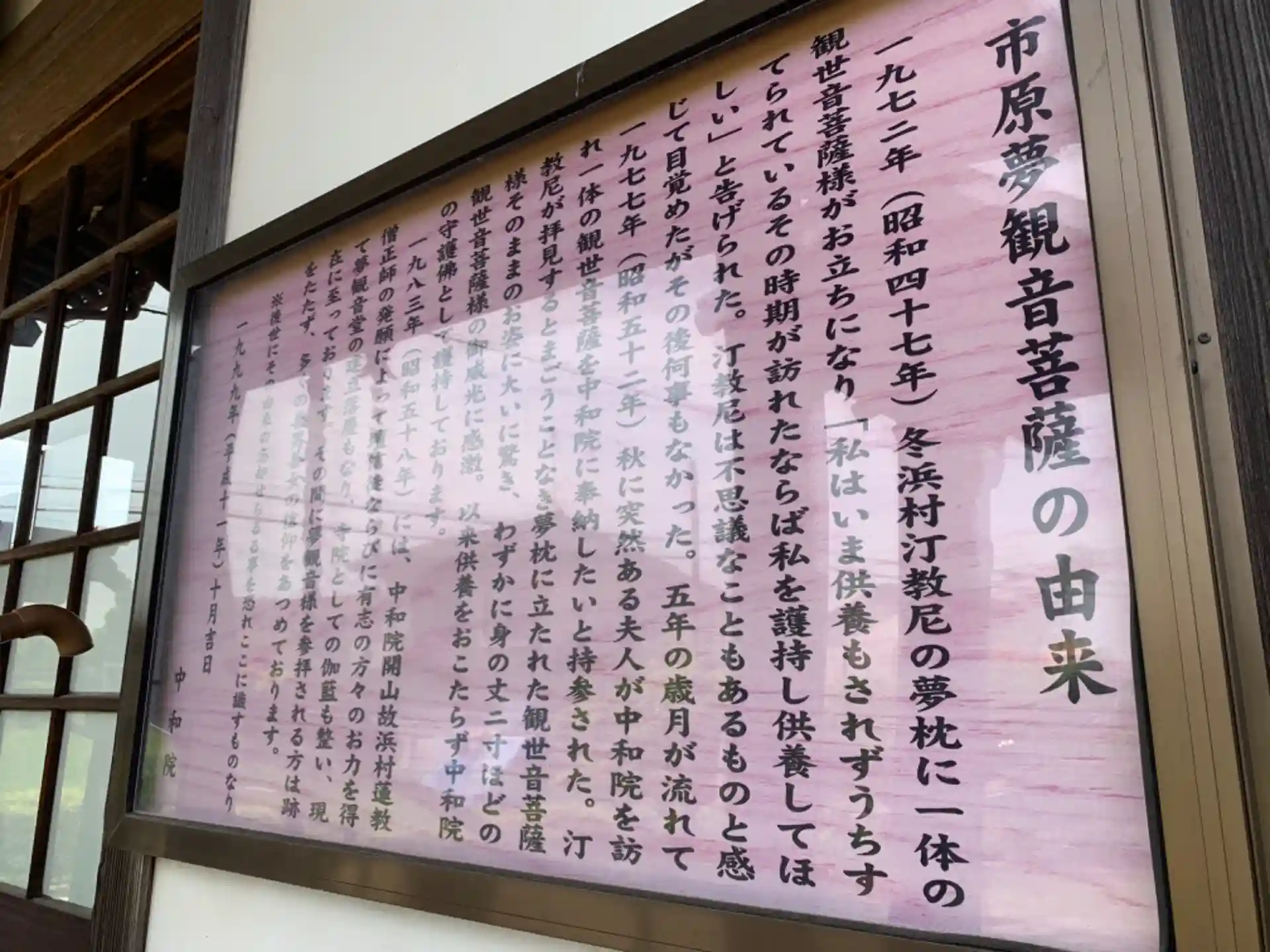 1983年に開山した新しめのお寺。案内板には開山に至る経緯が書いてあります。