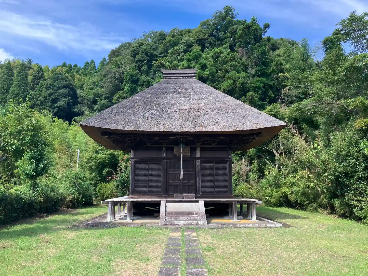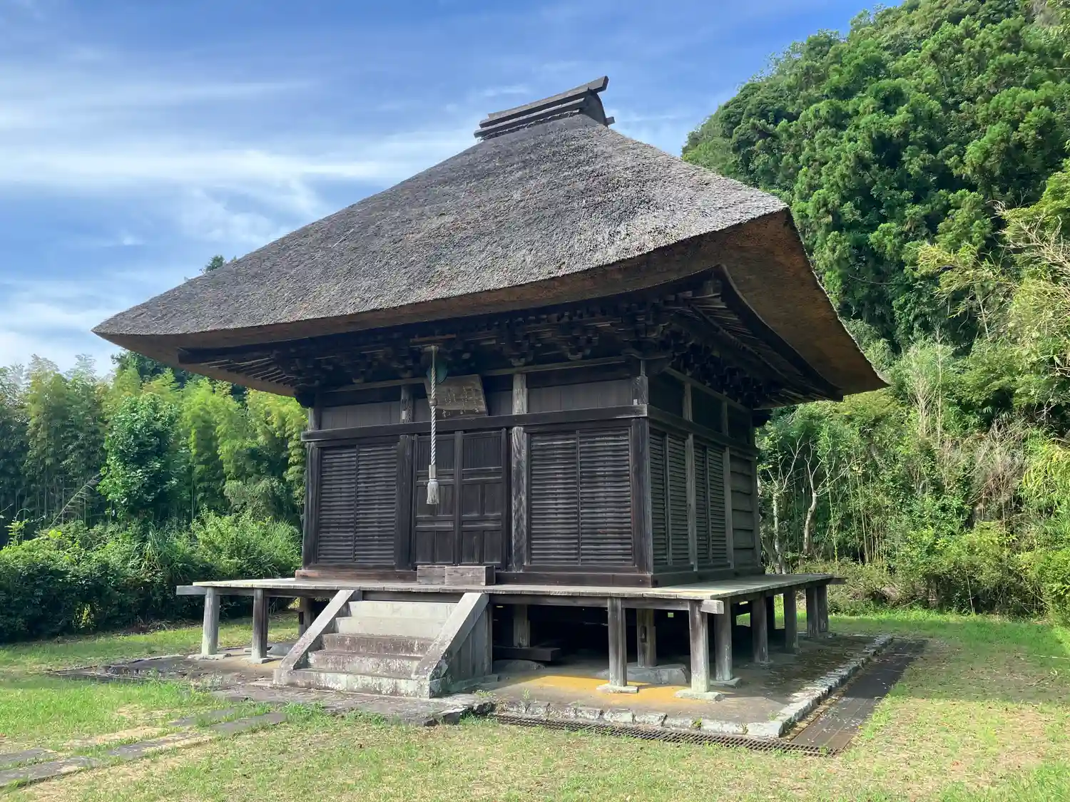 荒れていた寺院を昭和時代に修復したそうで、きれいに刈り込まれた茅葺きが維持の力の入れようを物語っているようです。