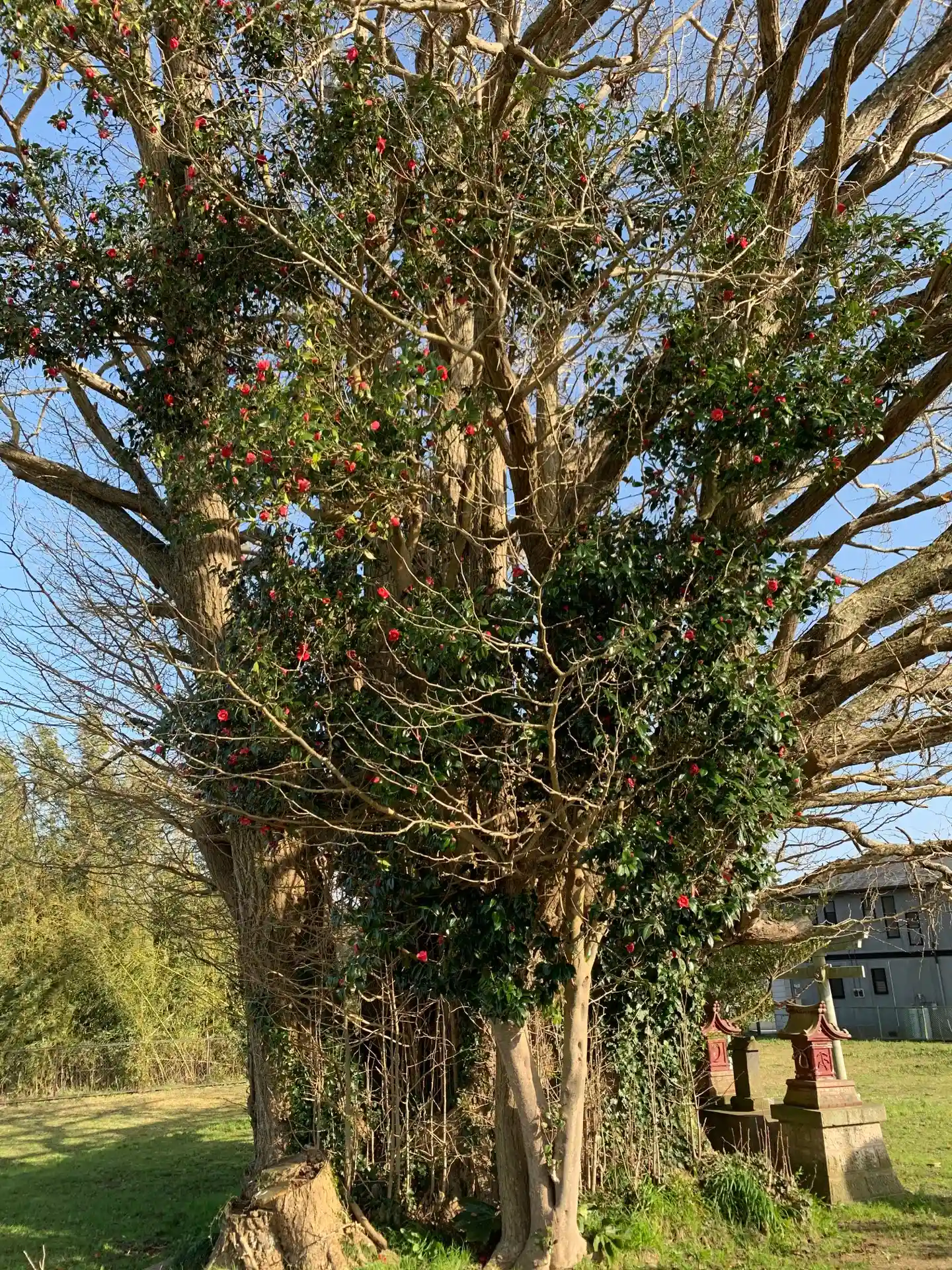 大銀杏の傍にツバキが生えていました。