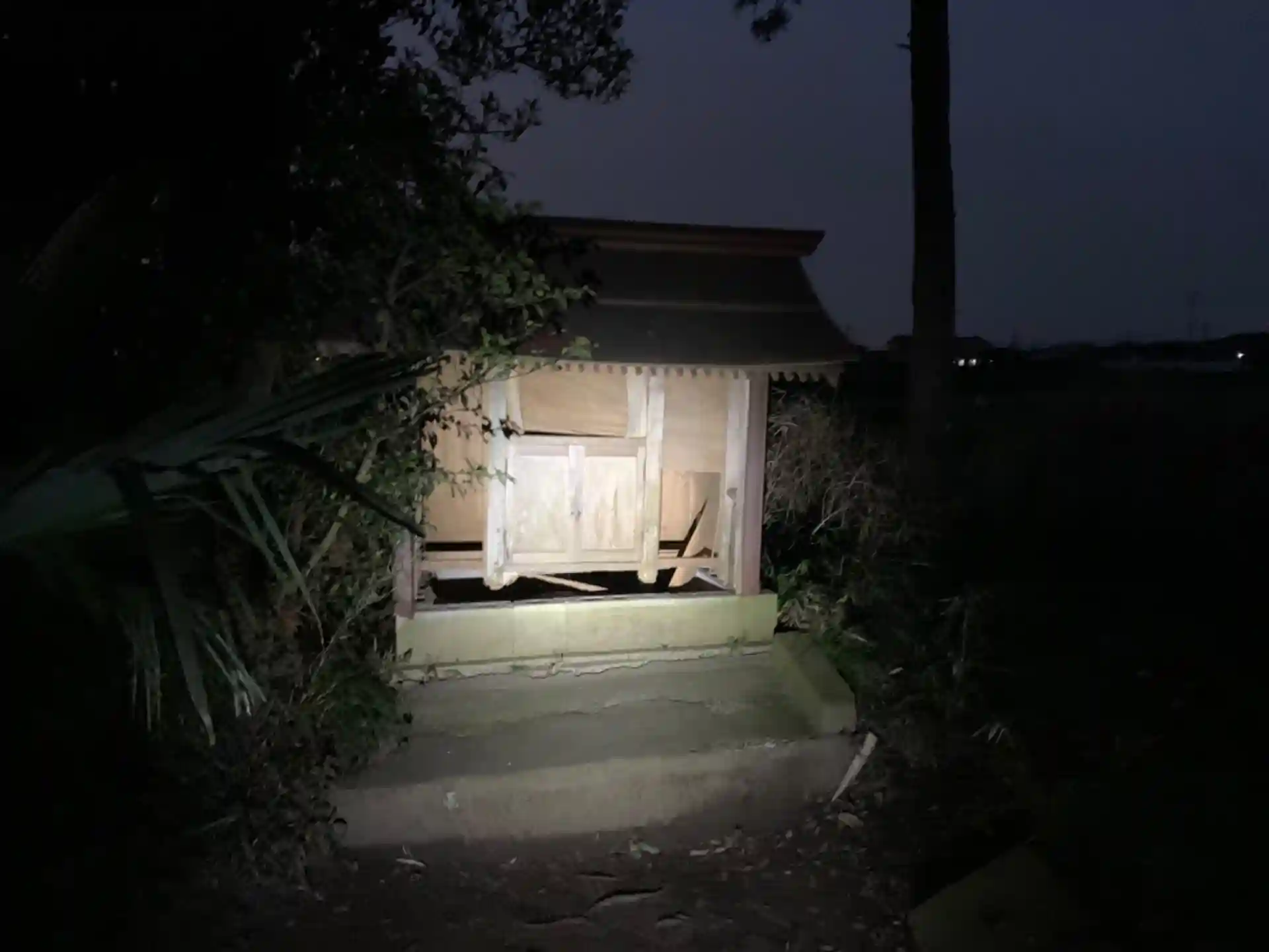 二つの鳥居の向こうに社殿があります。社殿の裏にはもう一つ鳥居があり、中には祀られなくなったと思われるお社がありました。