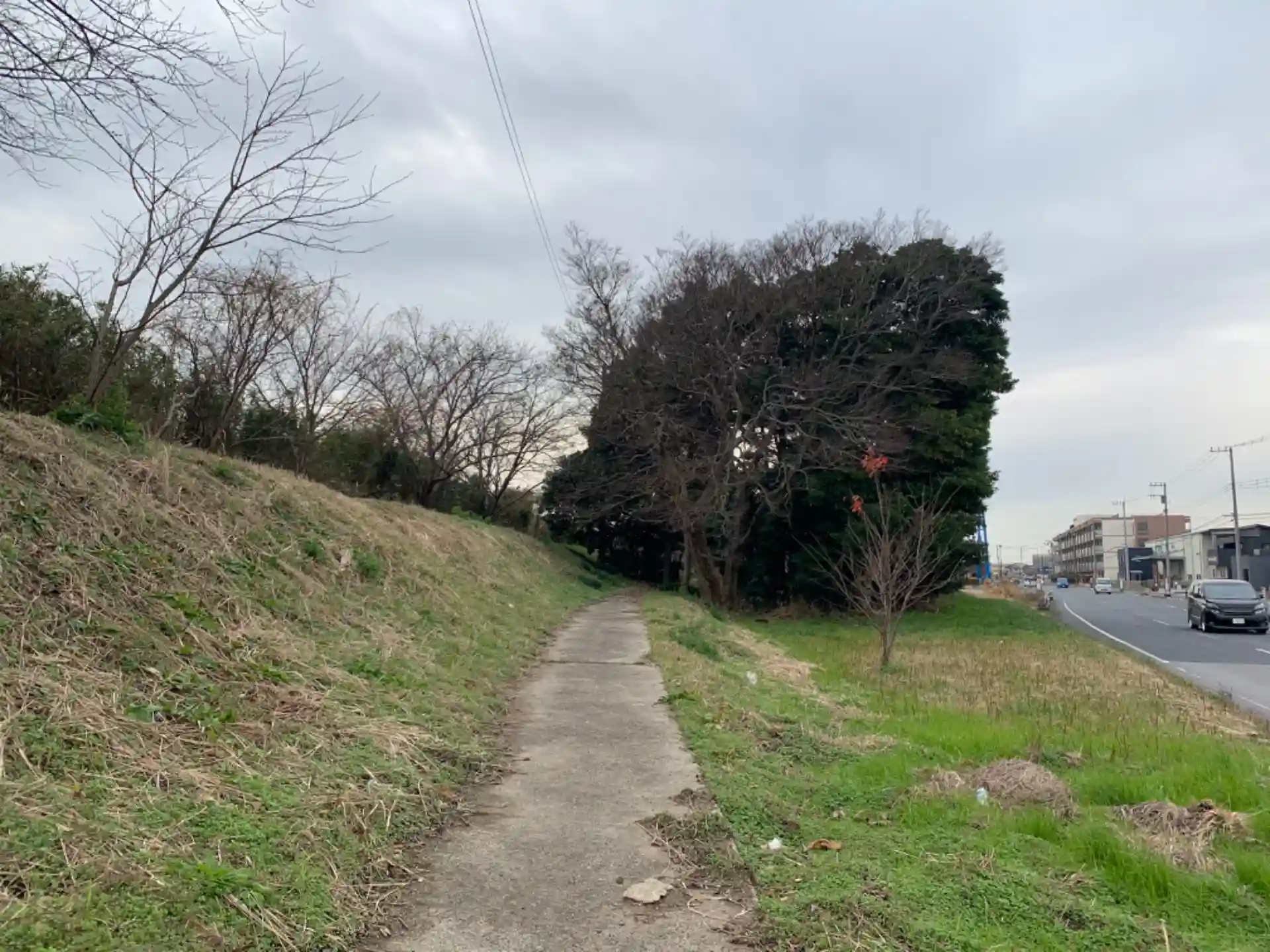 土手の根元にある神社。