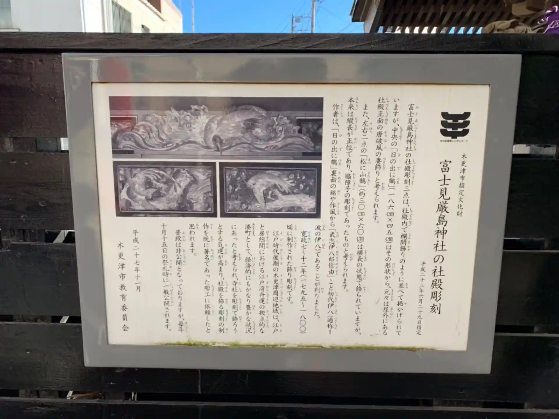 建物を覗き込むと波の伊八が彫り上げた鶴と山鵲を見ることができます。