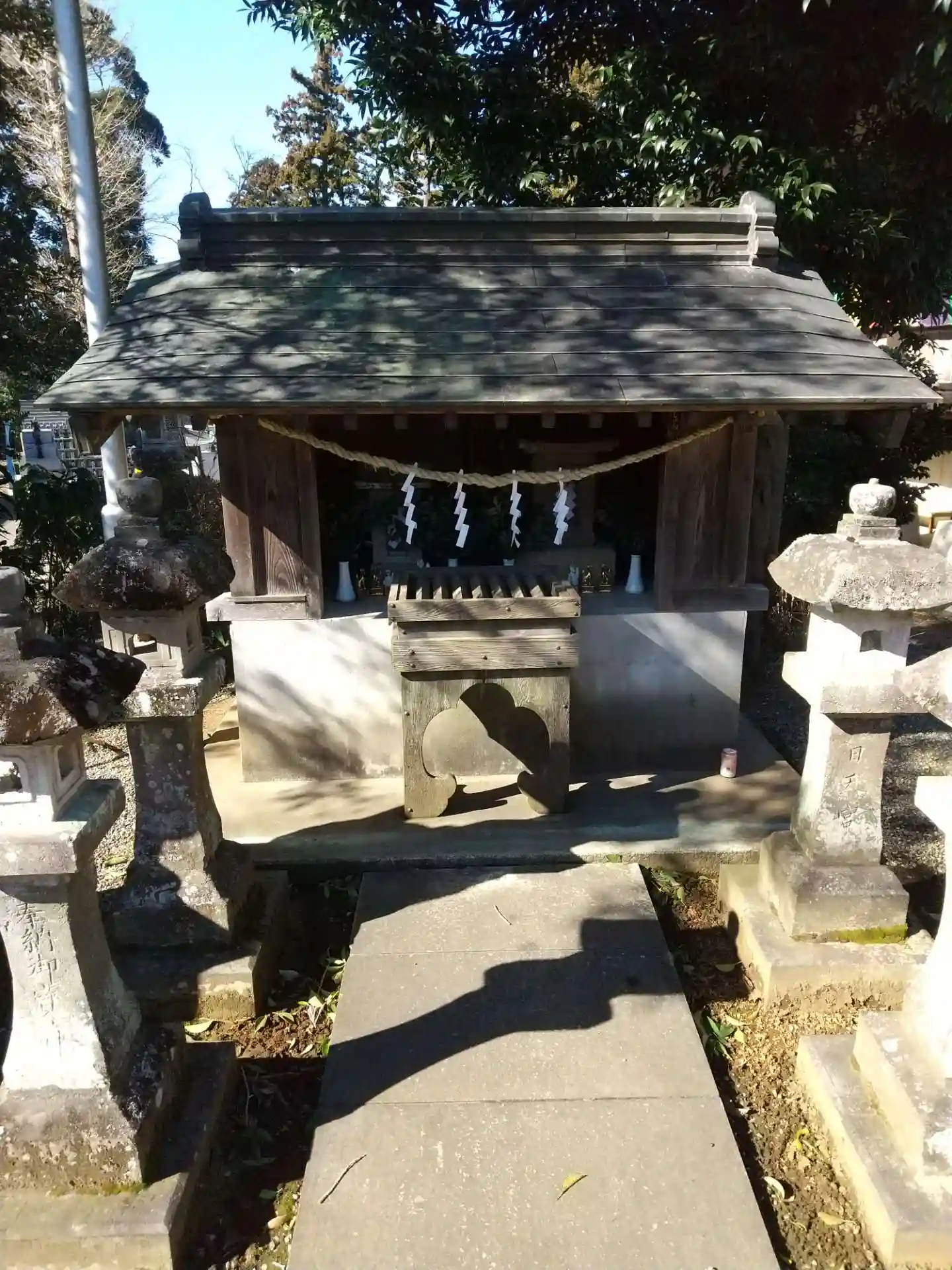 境内左手にある<境内社>。中に小さな石祠が2つある。