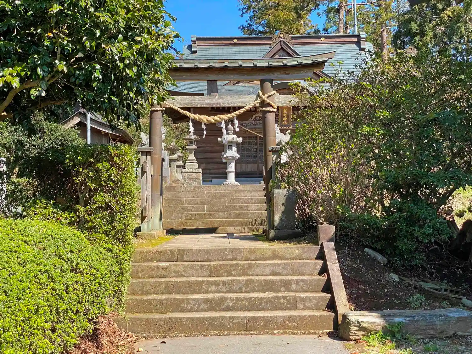 寺の鎮守社と言っても、別途入口の階段があり、鳥居と社号標がある。