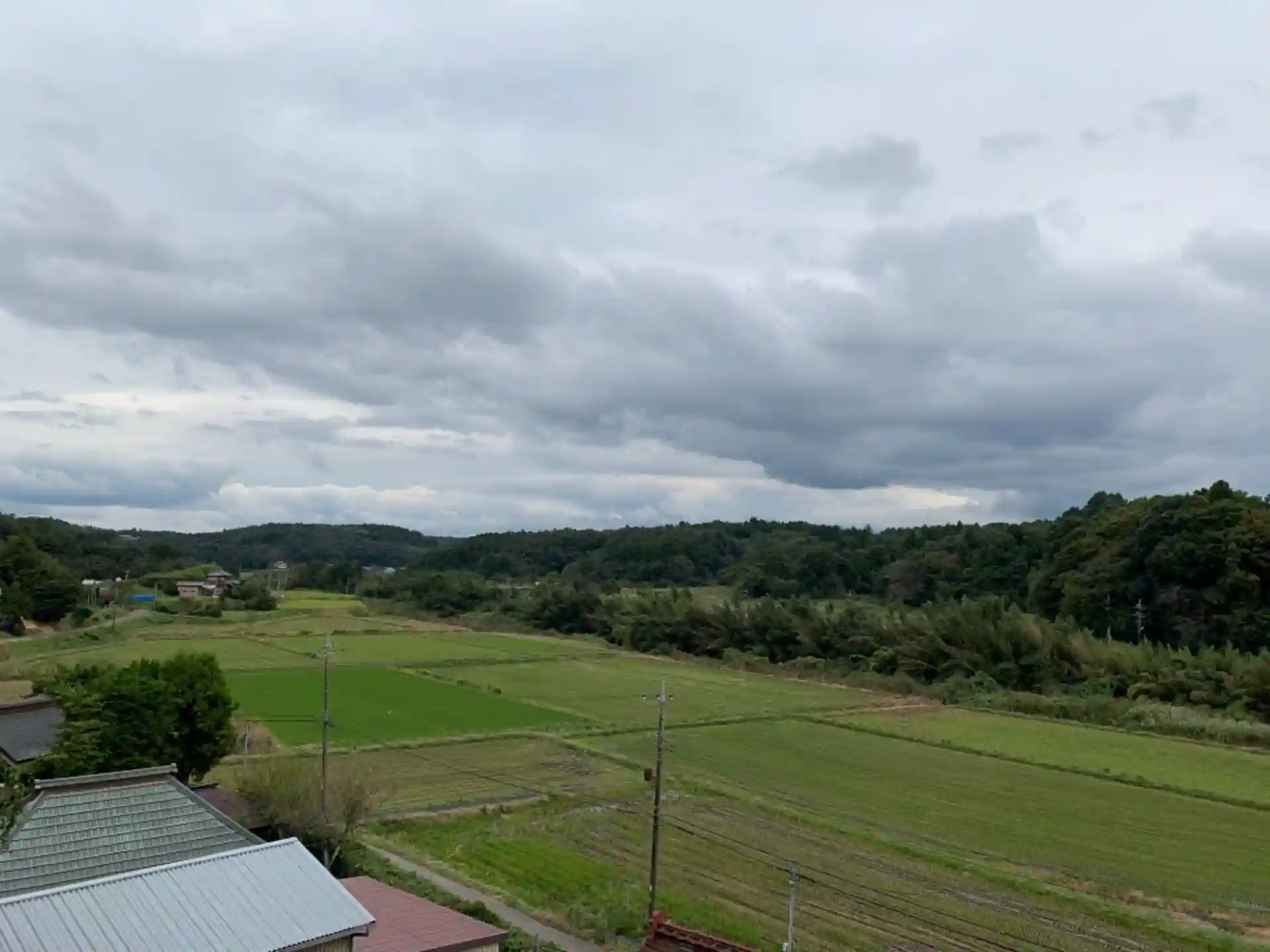 踊り場がほとんどない急な石段の中ほどは田んぼを一望できます。
