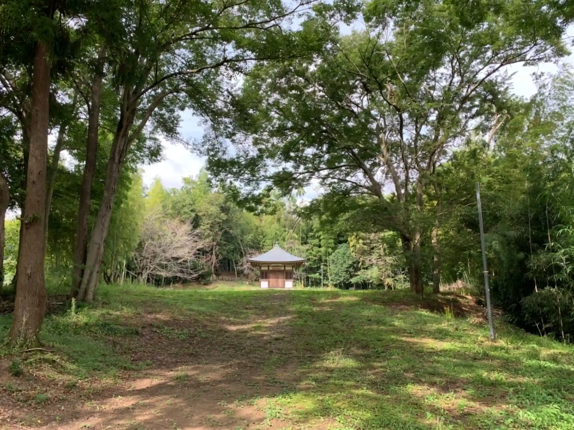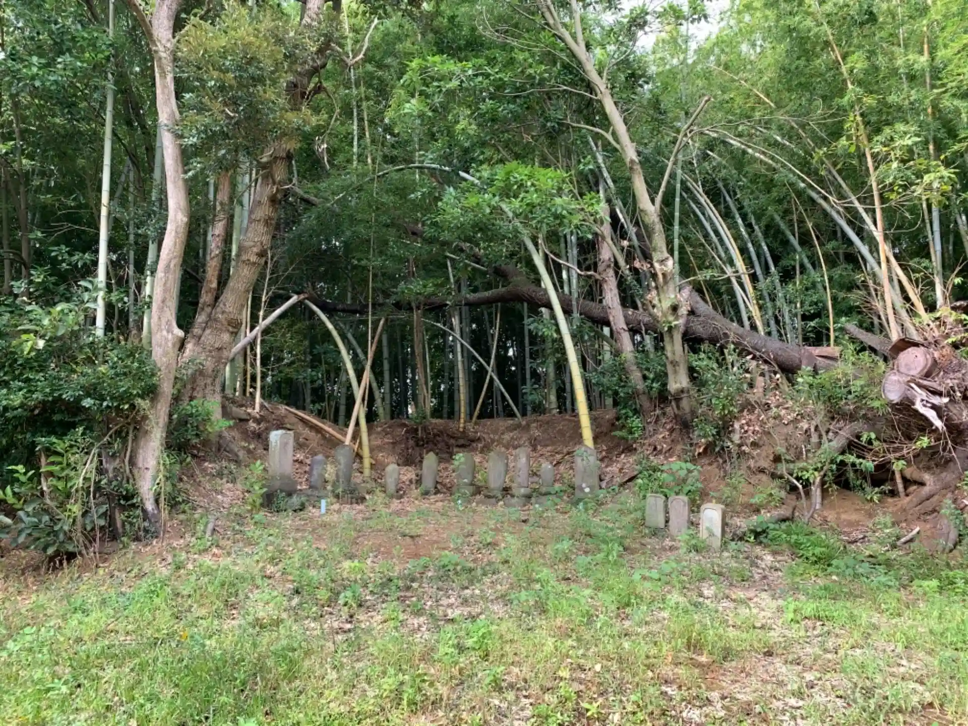 田んぼの中に浮かぶ小島のような竹藪の中にあります。