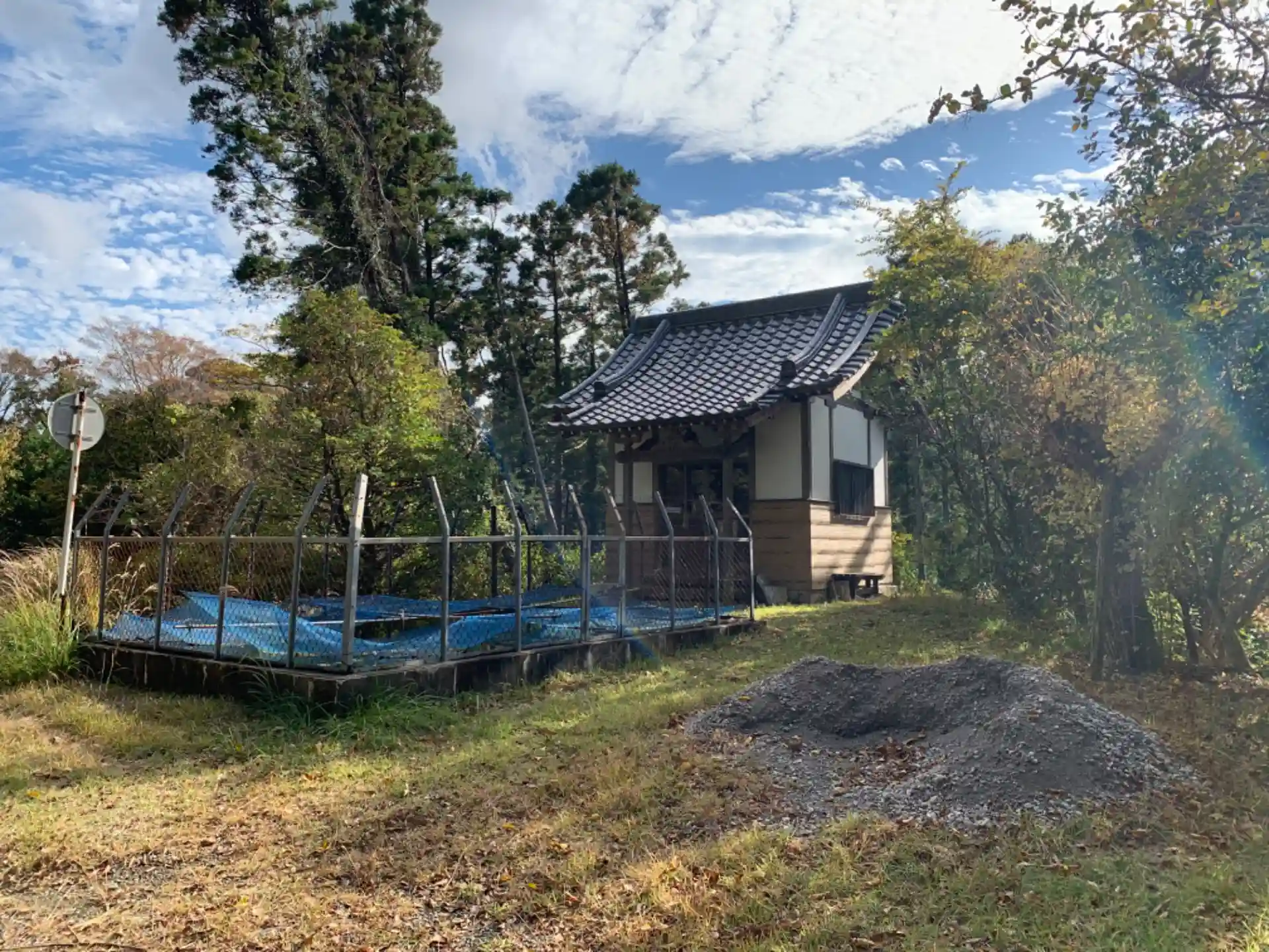 保田見林道にあるお堂。川から遠い尾根沿いのエリアには貴重な水源である防火水槽に併設されています。お堂脇にはベンチがあり、林道ハイキングの休憩ポイントにちょうど良かったです。