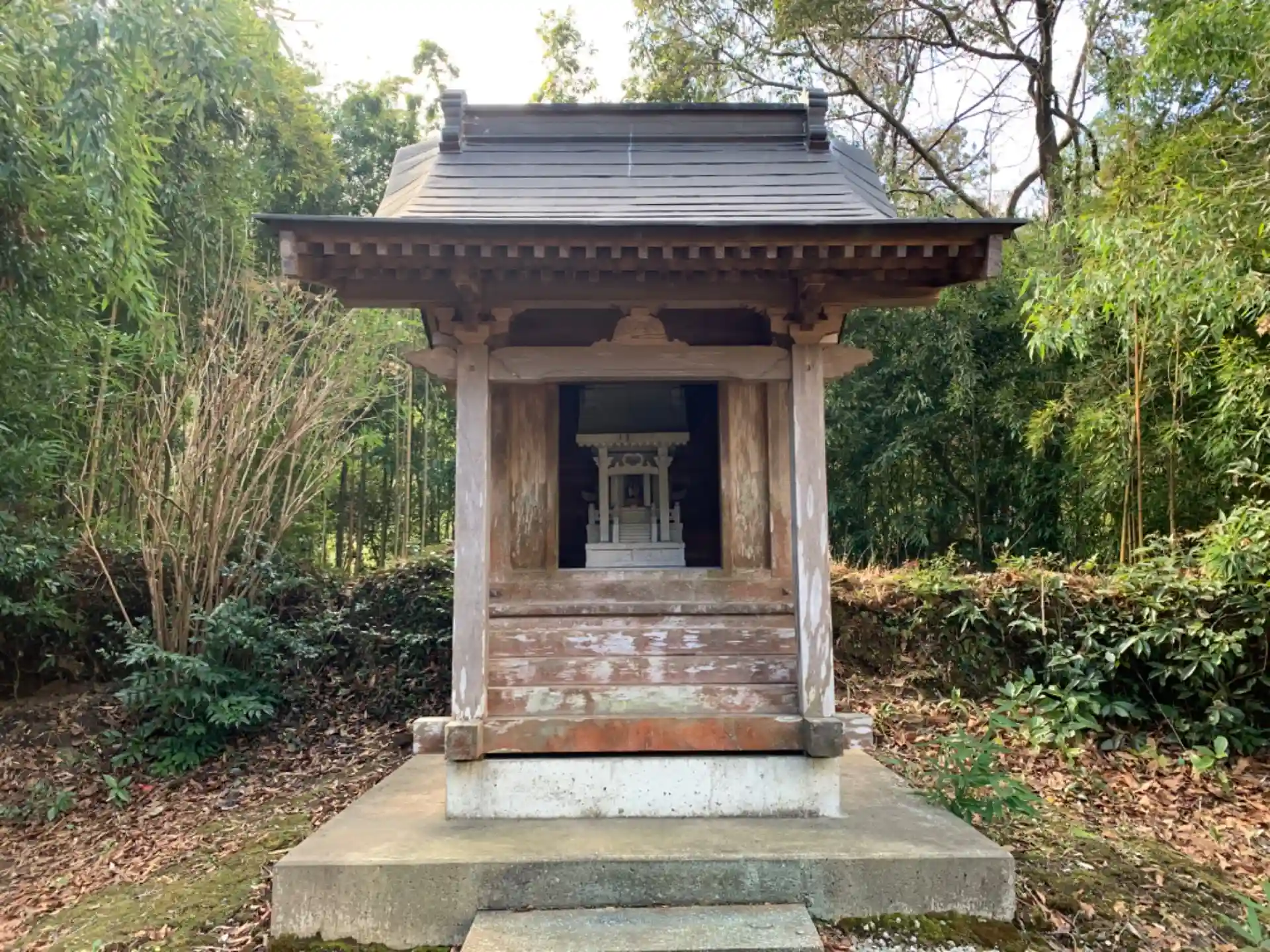 道路沿いの小さな神社。中に真新しい石祠が祀ってあります。