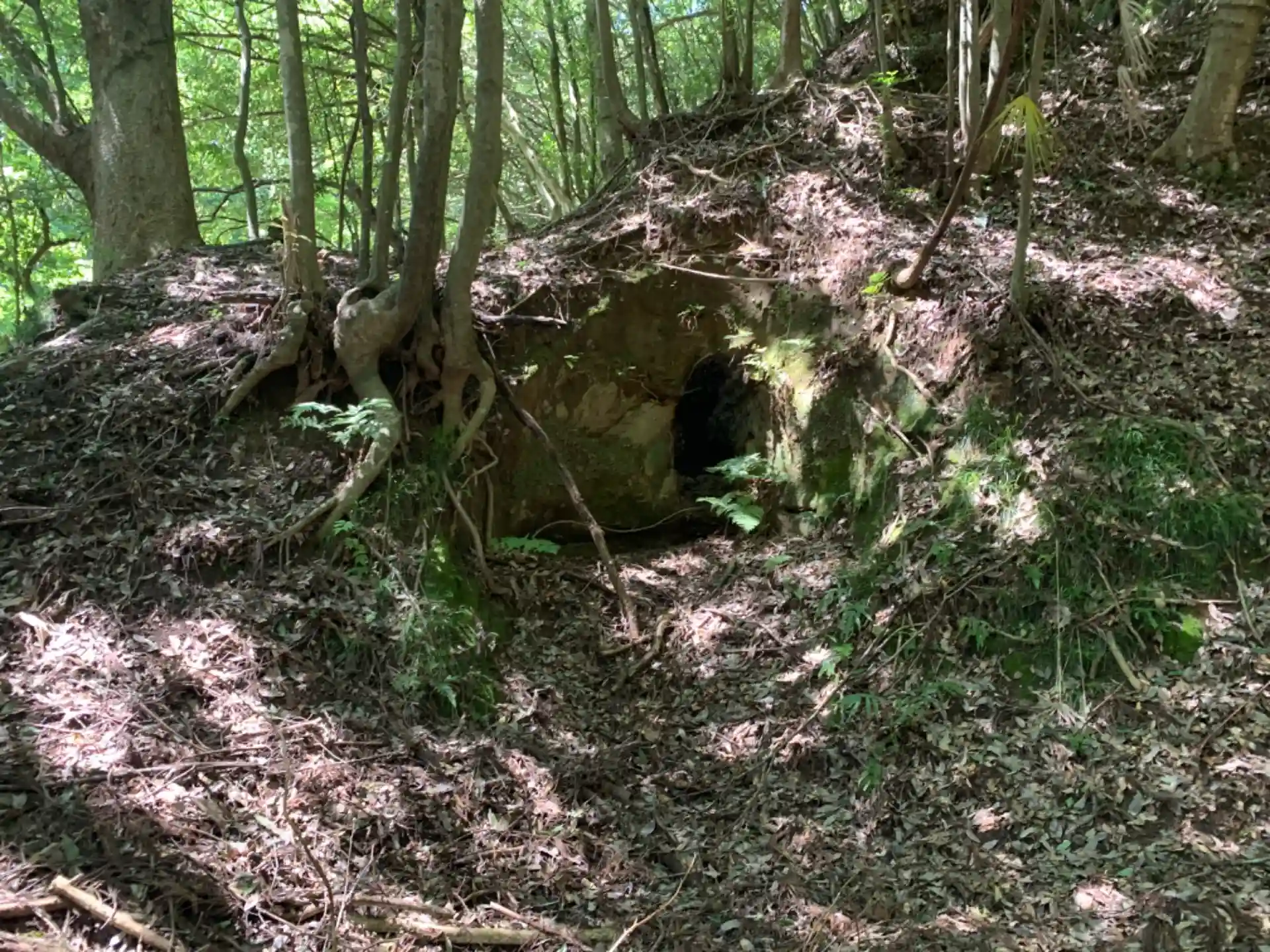 裏手の谷に素掘りトンネルのようなものがありましたが、行ってみたらただの窪みでした。