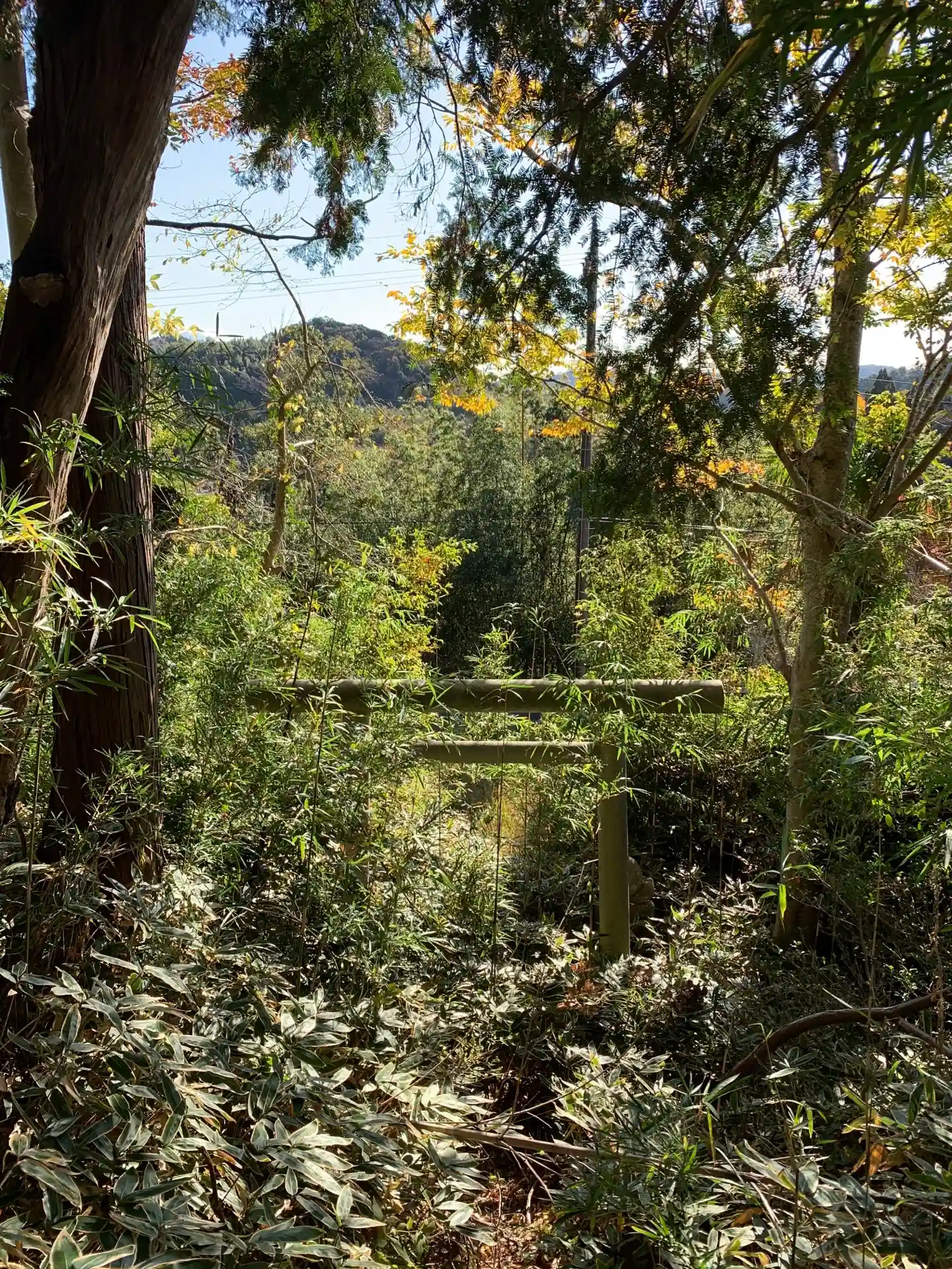 藪に埋もれた鳥居、地蜂の巣と化した石祠。