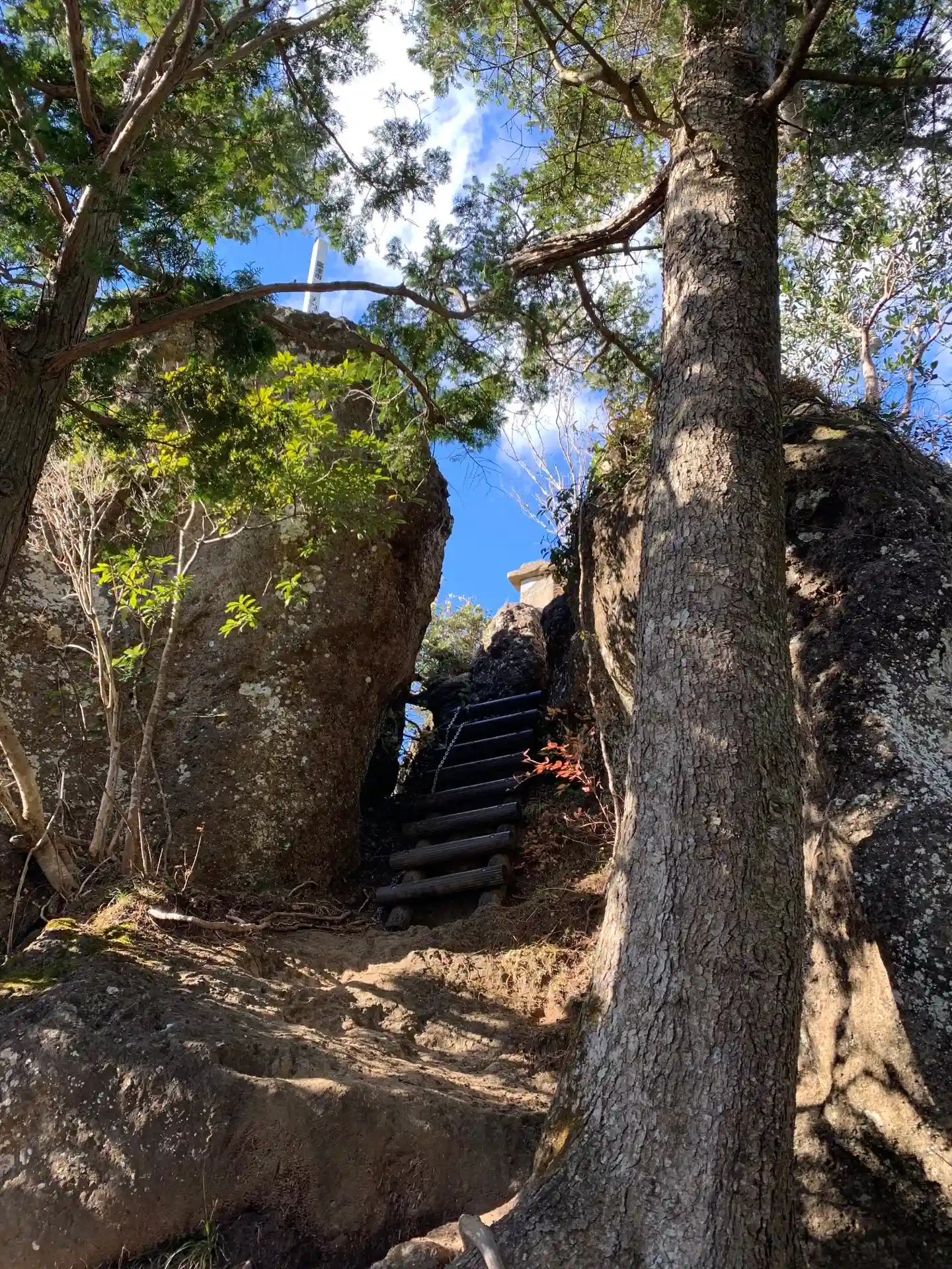 山頂は狭いので、休憩は岩の下のベンチでしましょう。