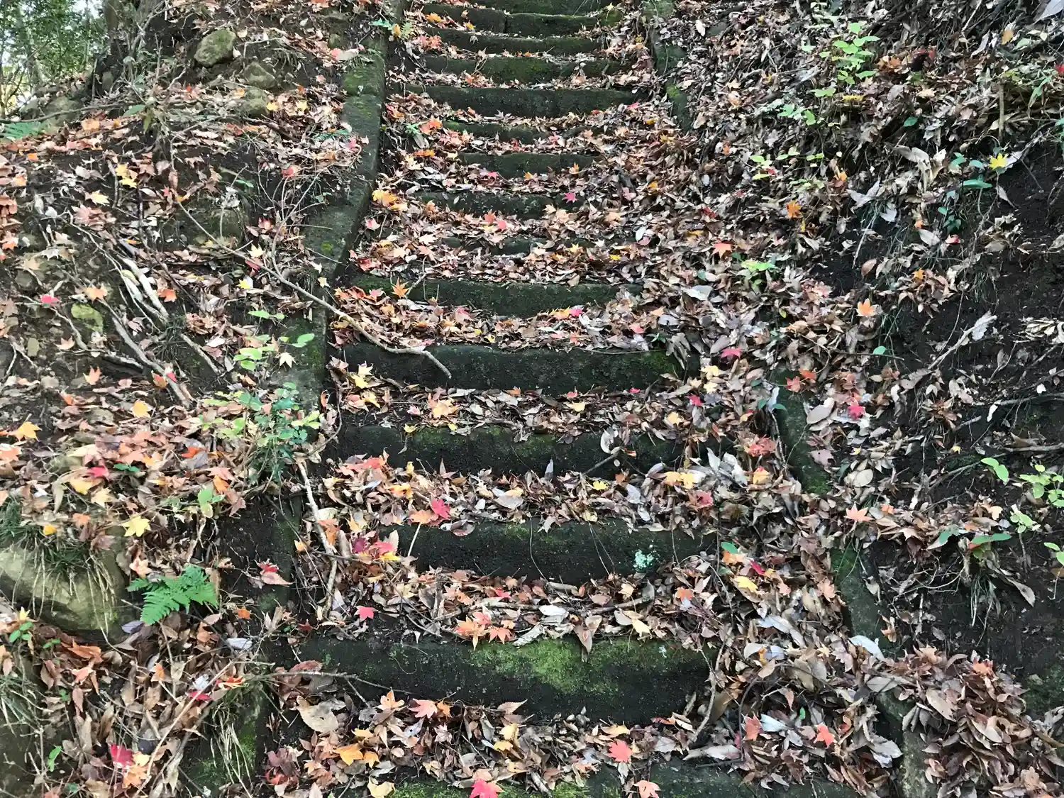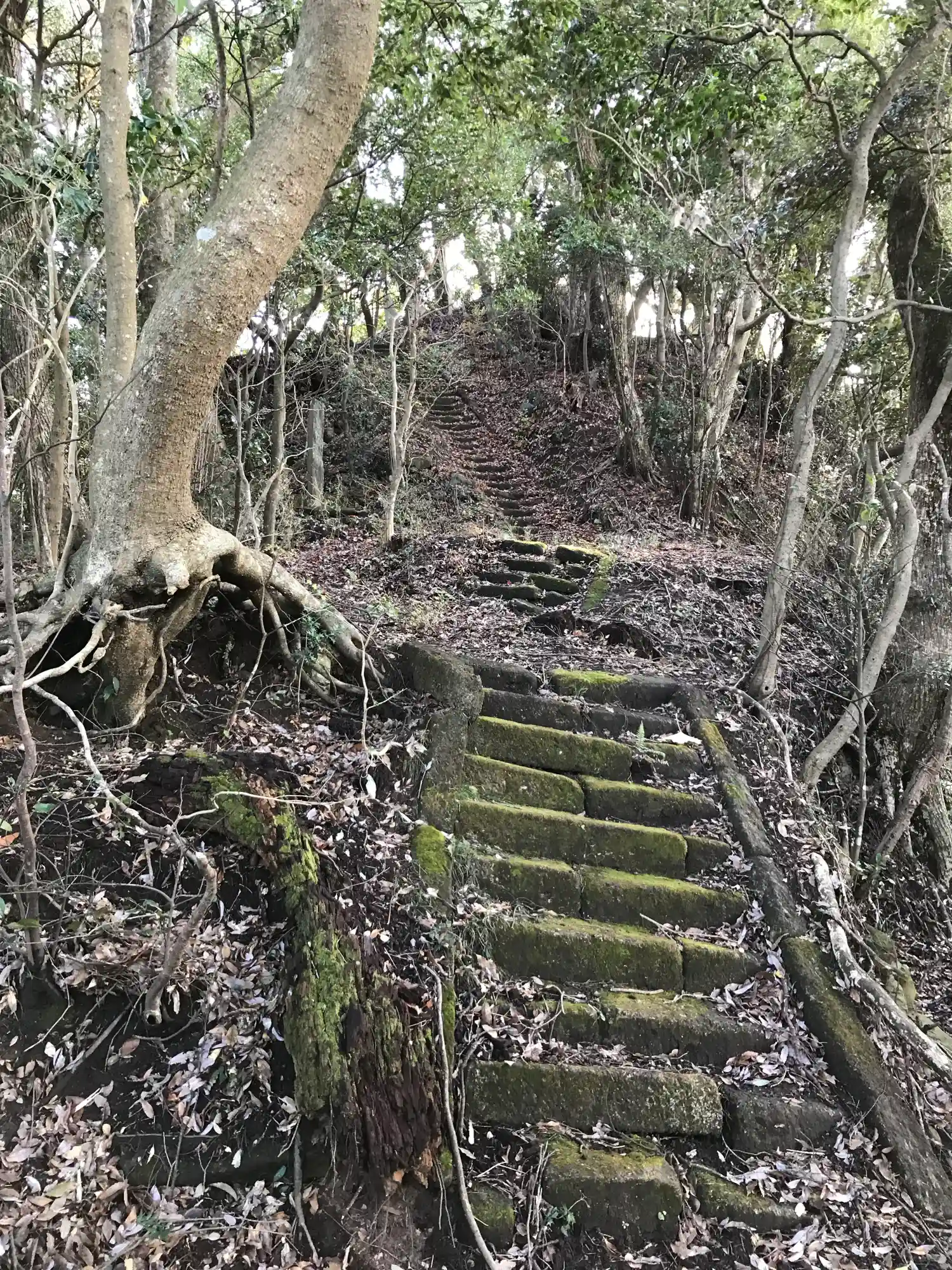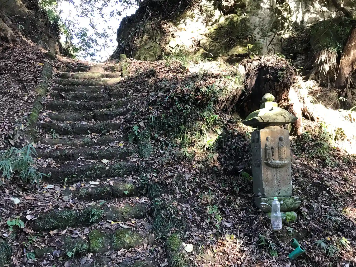 尾根から崩れ落ちそうな石段もあります。