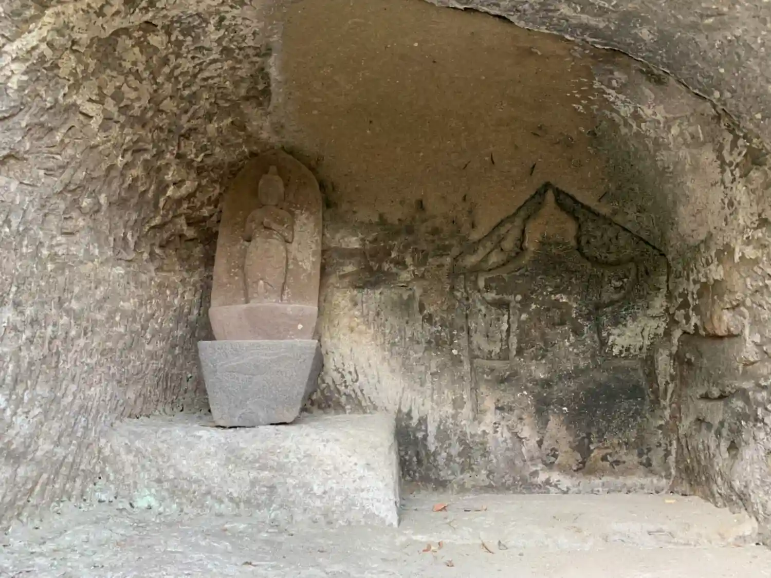 層によっては岩質がホロホロなのでとても崩れやすいです。かつては文字や顔などが彫り込まれていたかもしれません。