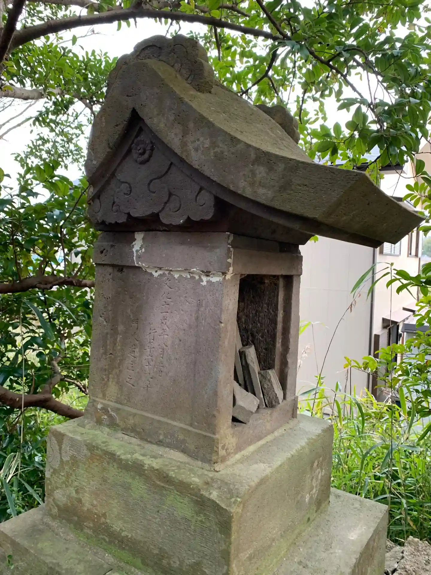文字がびっしり彫り込まれた石祠がいくつかありました。
