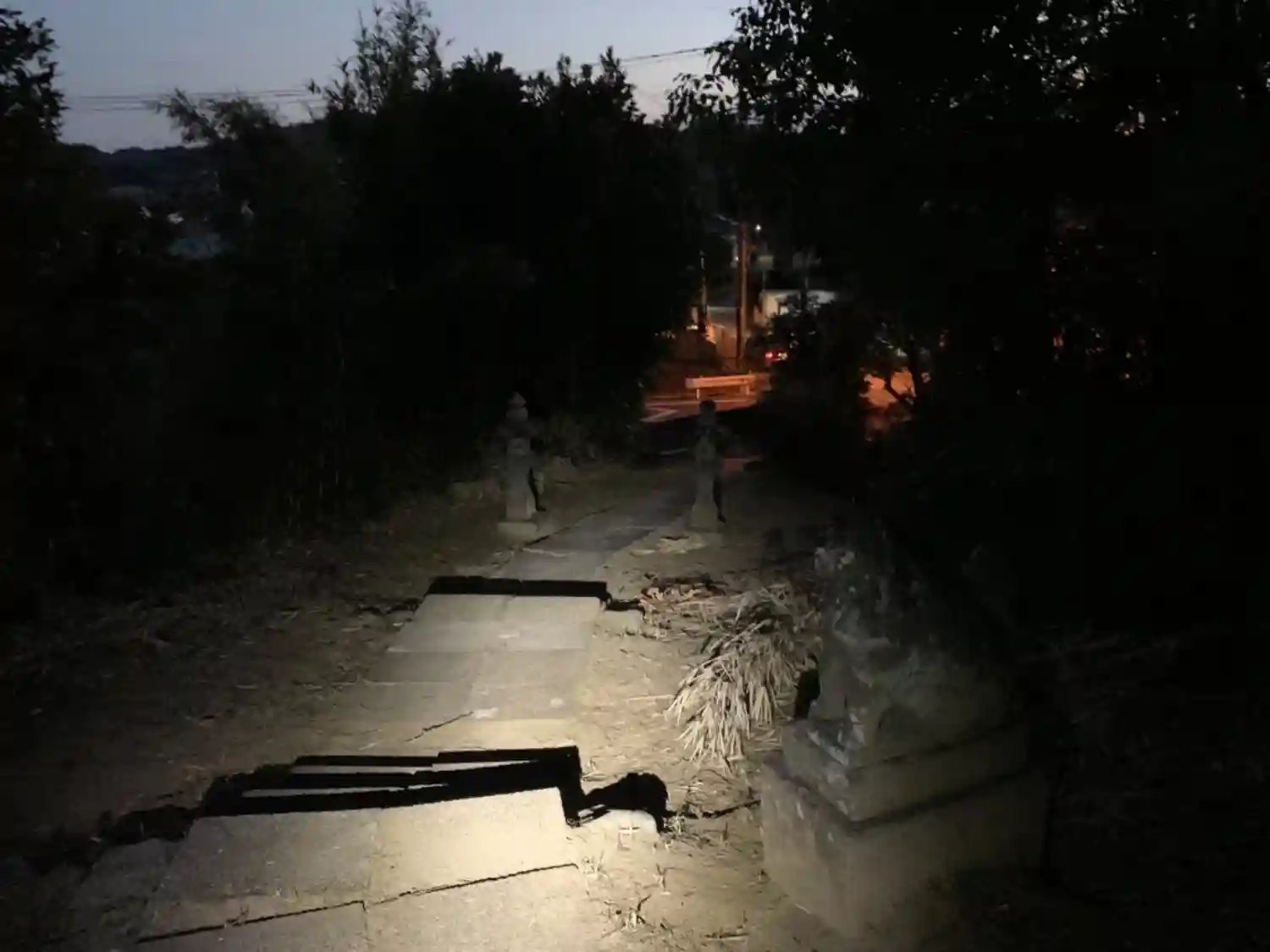 前回お参りしたときは真っ暗だったので改めて狛犬さんの顔を拝みに行きました。想像以上に表情豊かです。