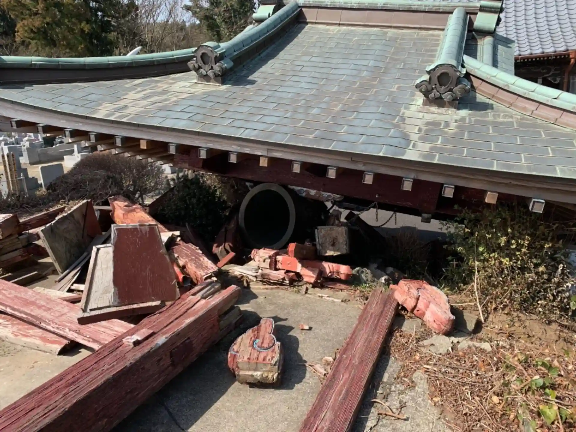 鐘楼が倒壊したまま放置されていました。
