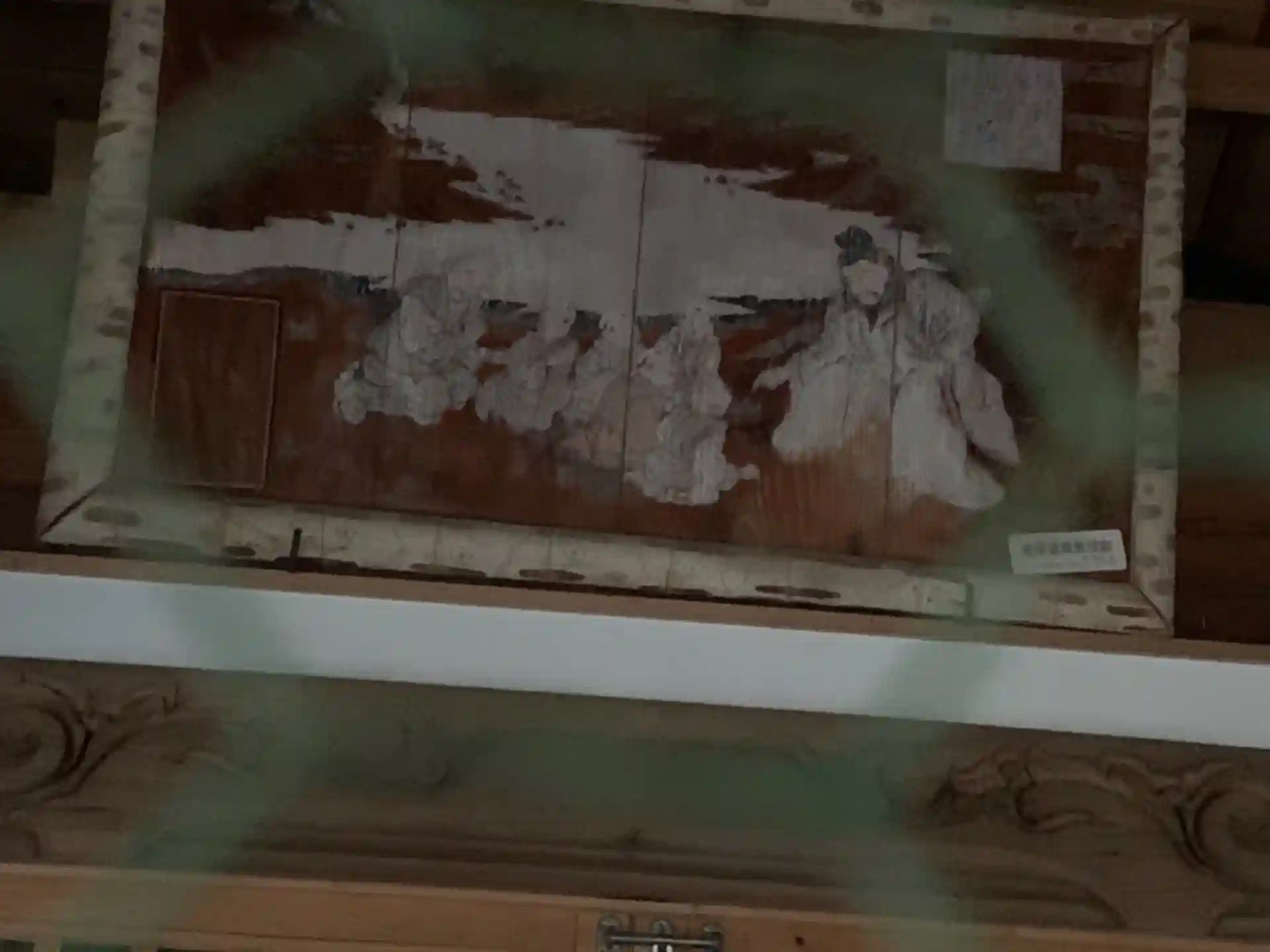 向拝に牛がいました。作者は分かりませんが、味のある荒削りな作品です。