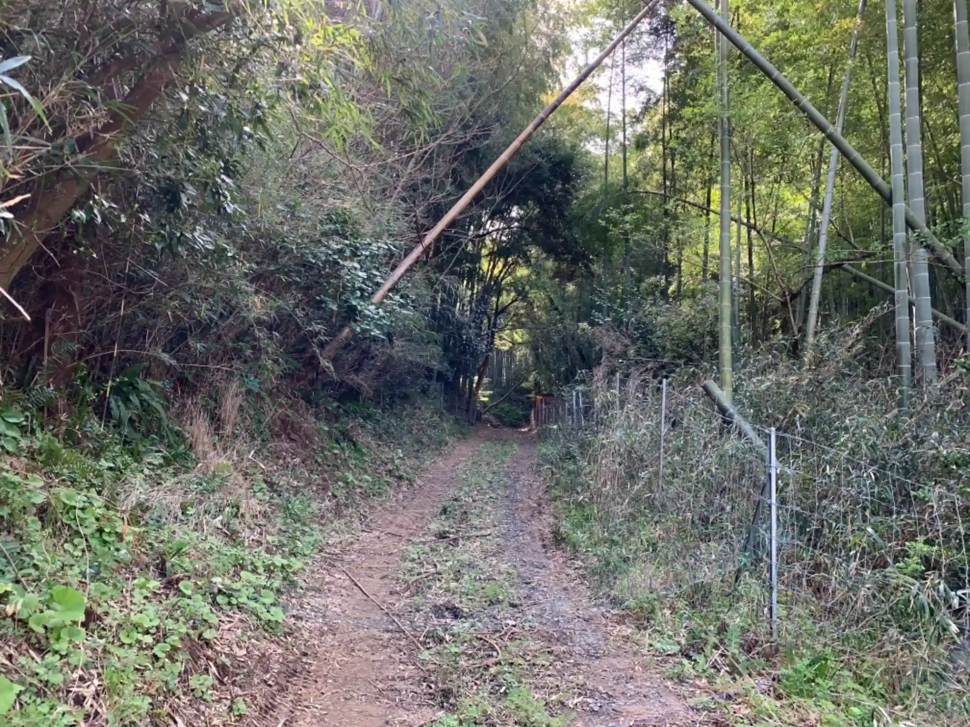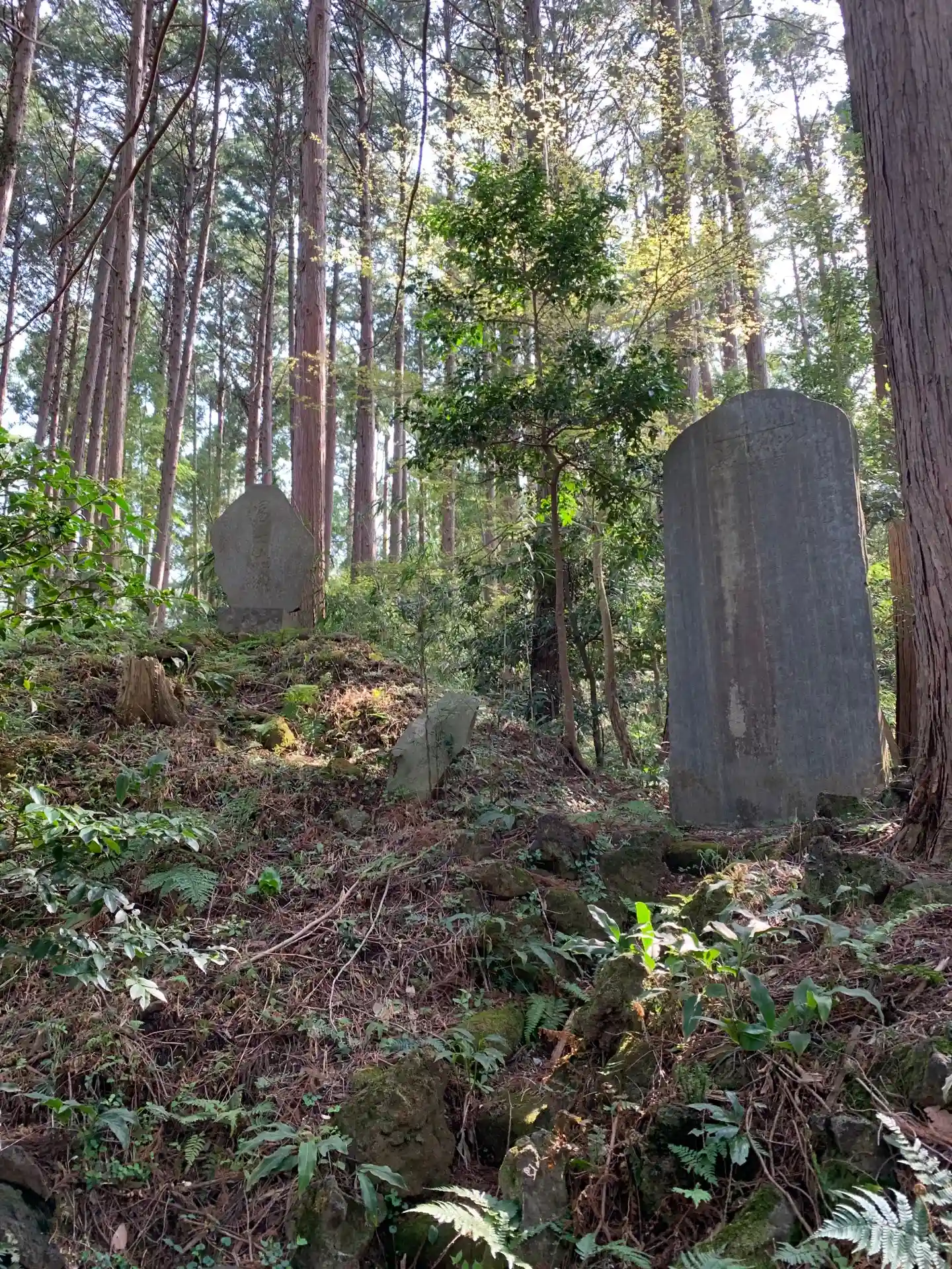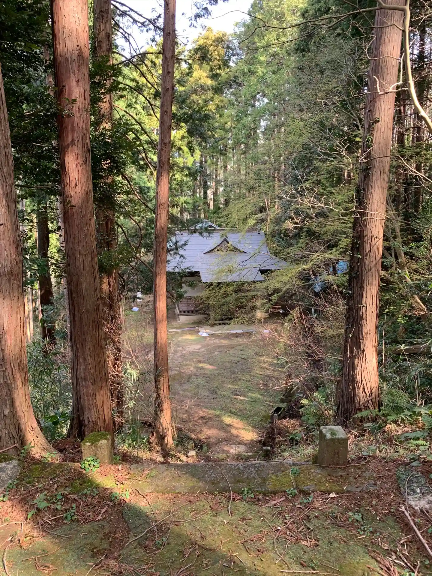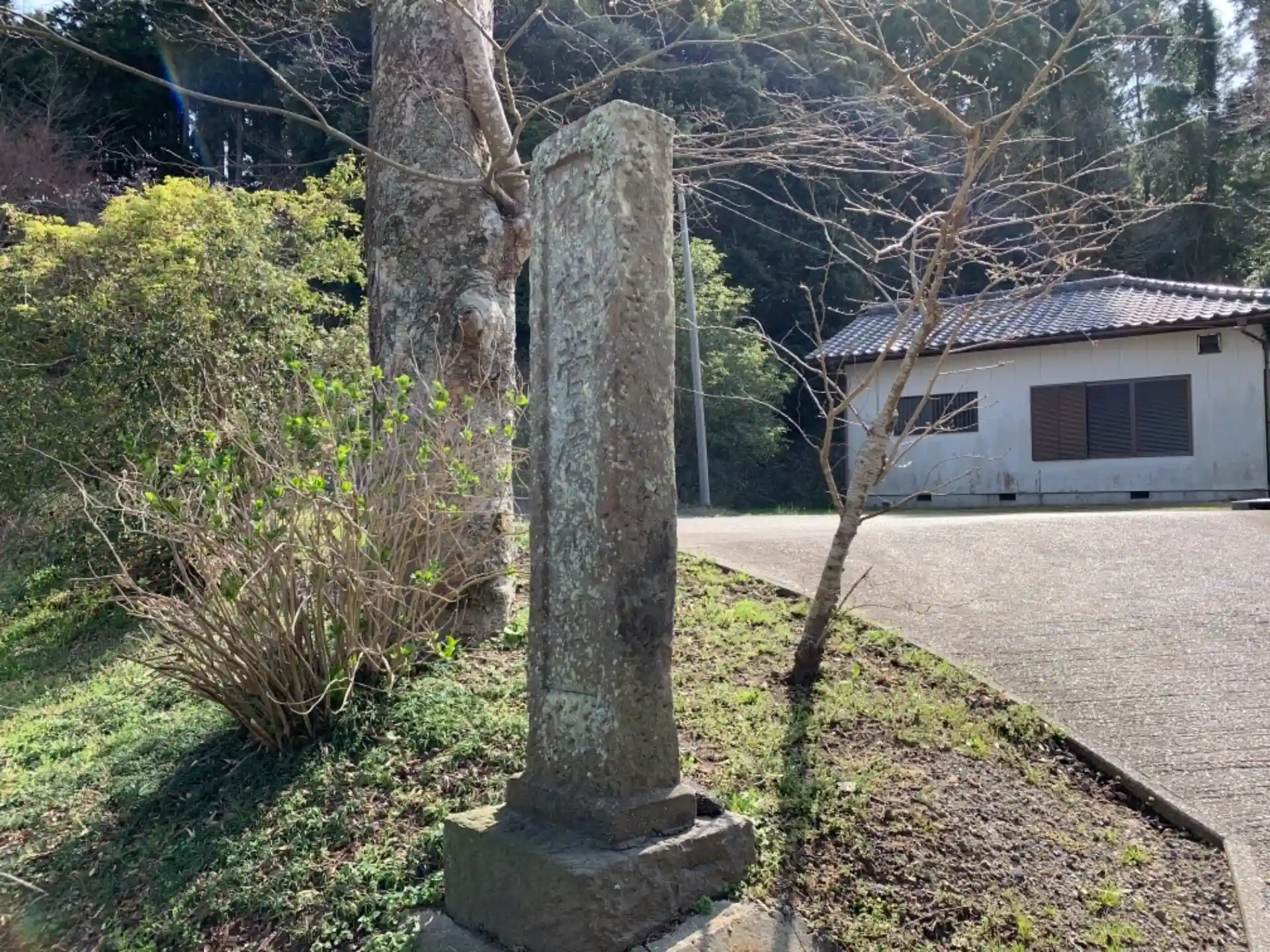 社標の裏のスロープはいわば裏参道で、表参道は集会所の奥にあります。