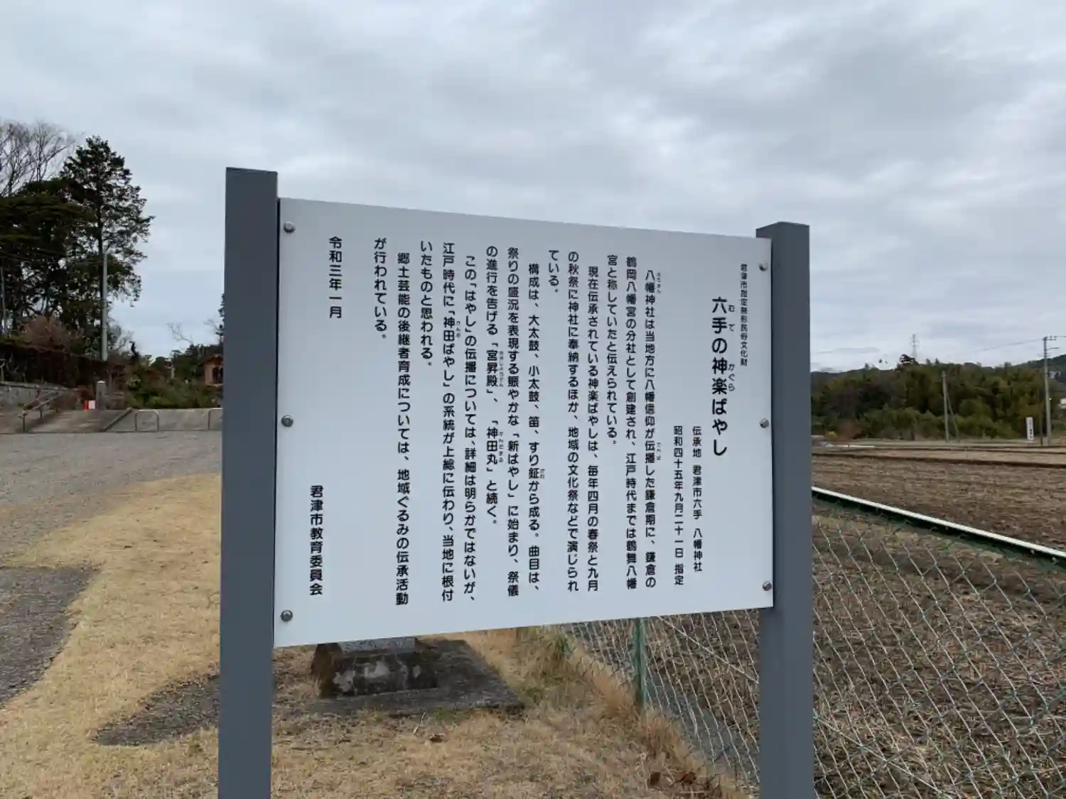 | ご由緒 | 六手集落草創の祖神を祀り、小糸川に接する台地上の古墳遺跡群の中に鎮座します。