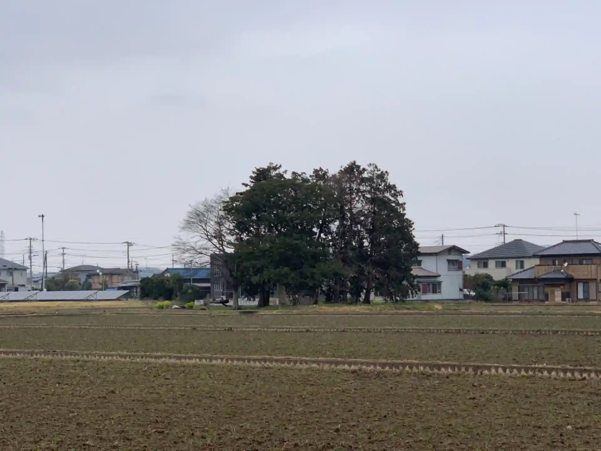 田んぼの中のこんもりした木が目印。