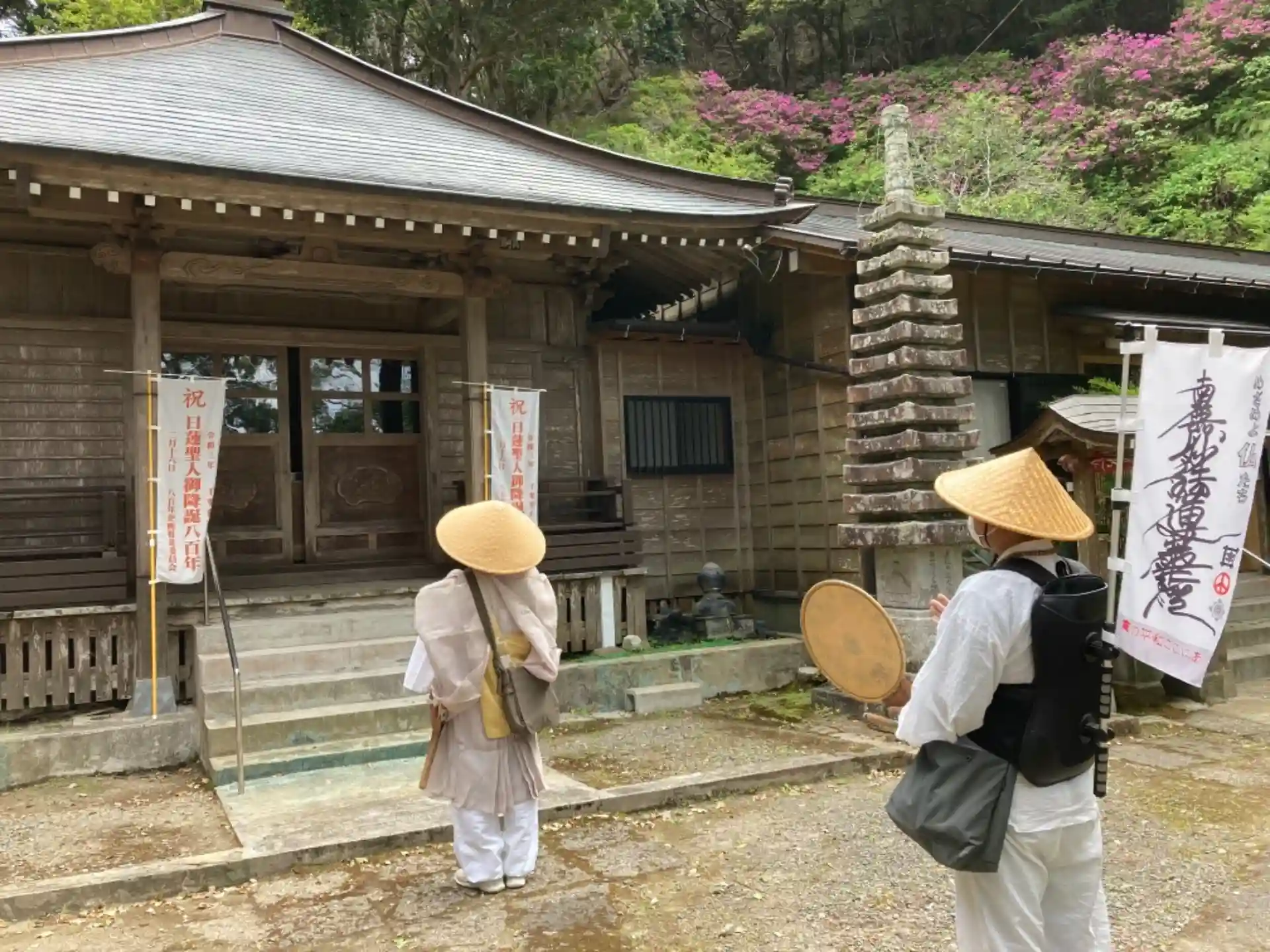 今日は、身延山修行時代の恩師と、同部屋で過ごしたお上人と共に、天津小湊の日蓮聖人ゆかりのお寺を、約20Km行脚をしながら巡り、参拝しました