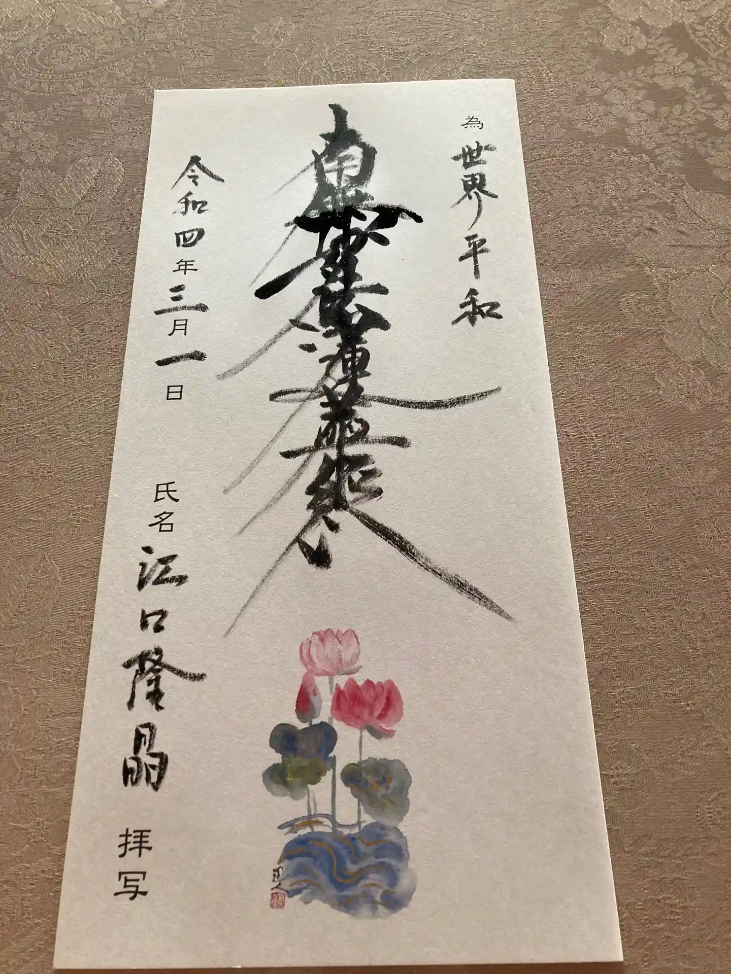 本日も、世界平和祈願写経をさせていただきました(^人^)
