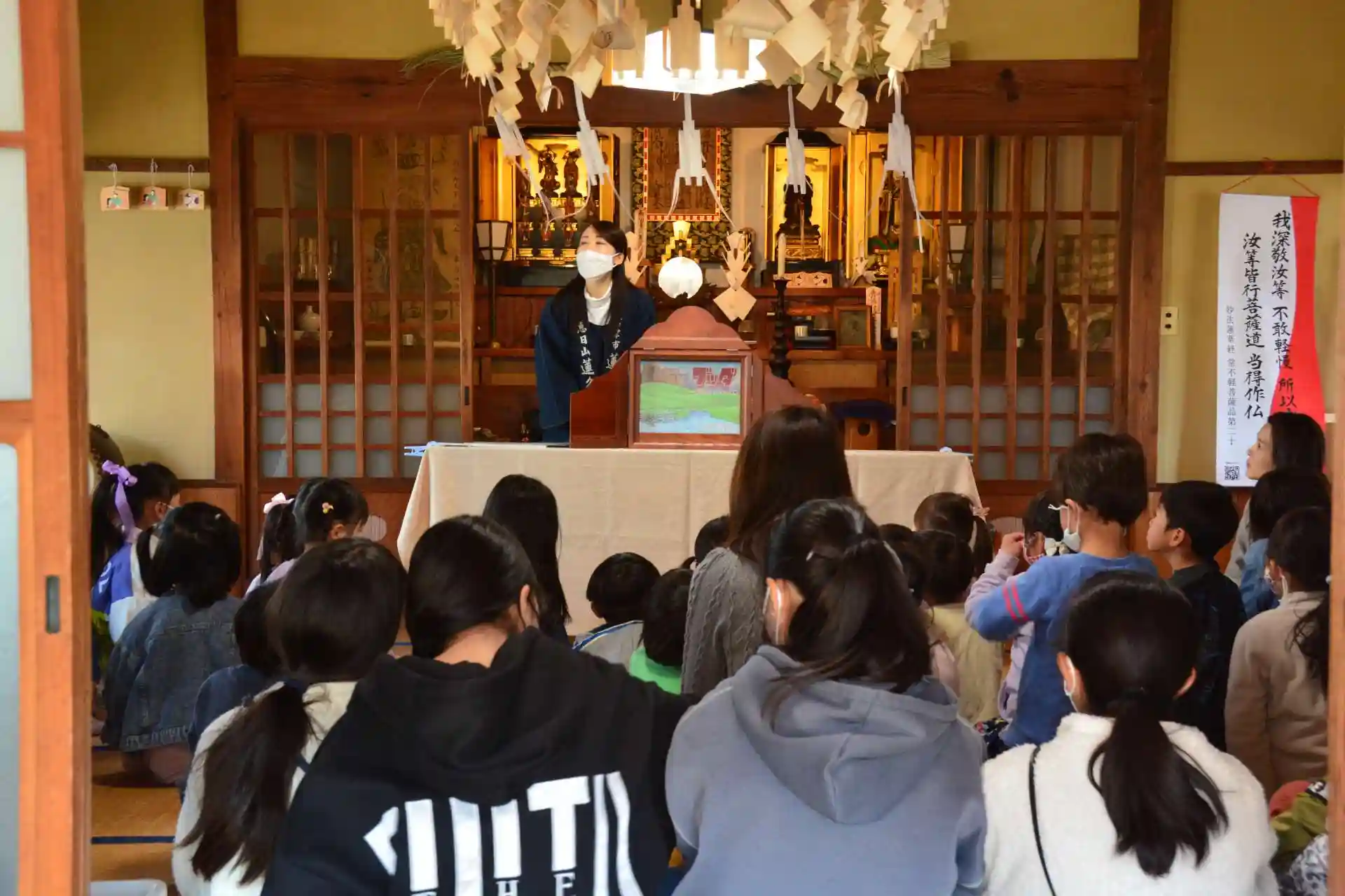 お堂が子ども達でいっぱいになるほどの盛況