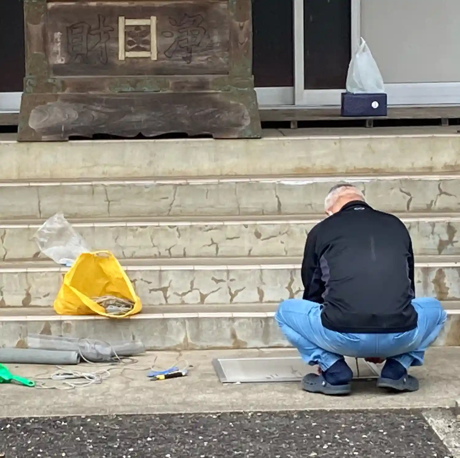 母屋から本堂まで、インターネット回線を配線しました!