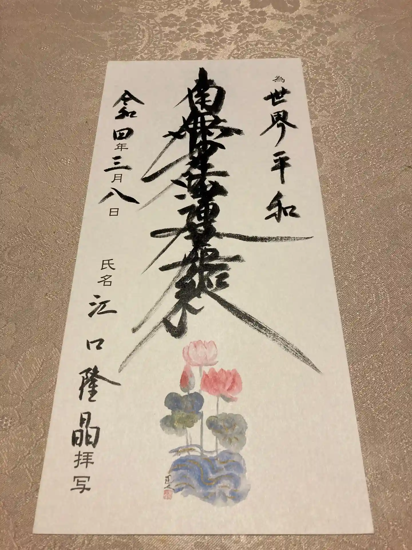 今日、御首題を書いた後、これを挟み込んでみた🎵