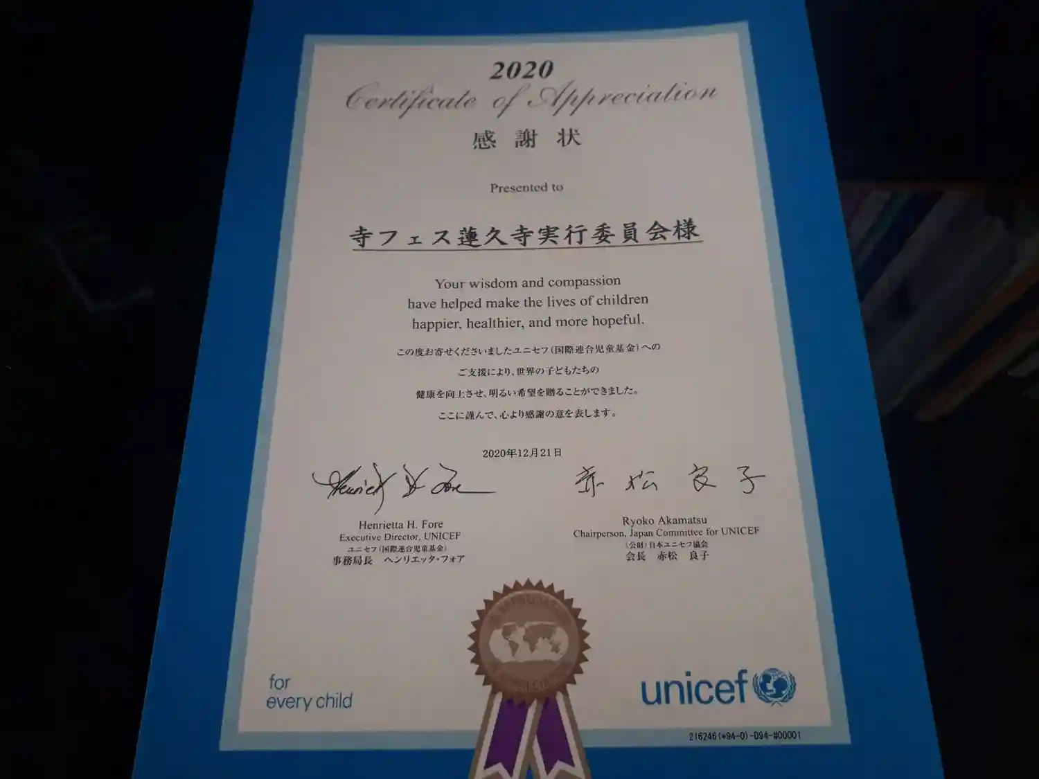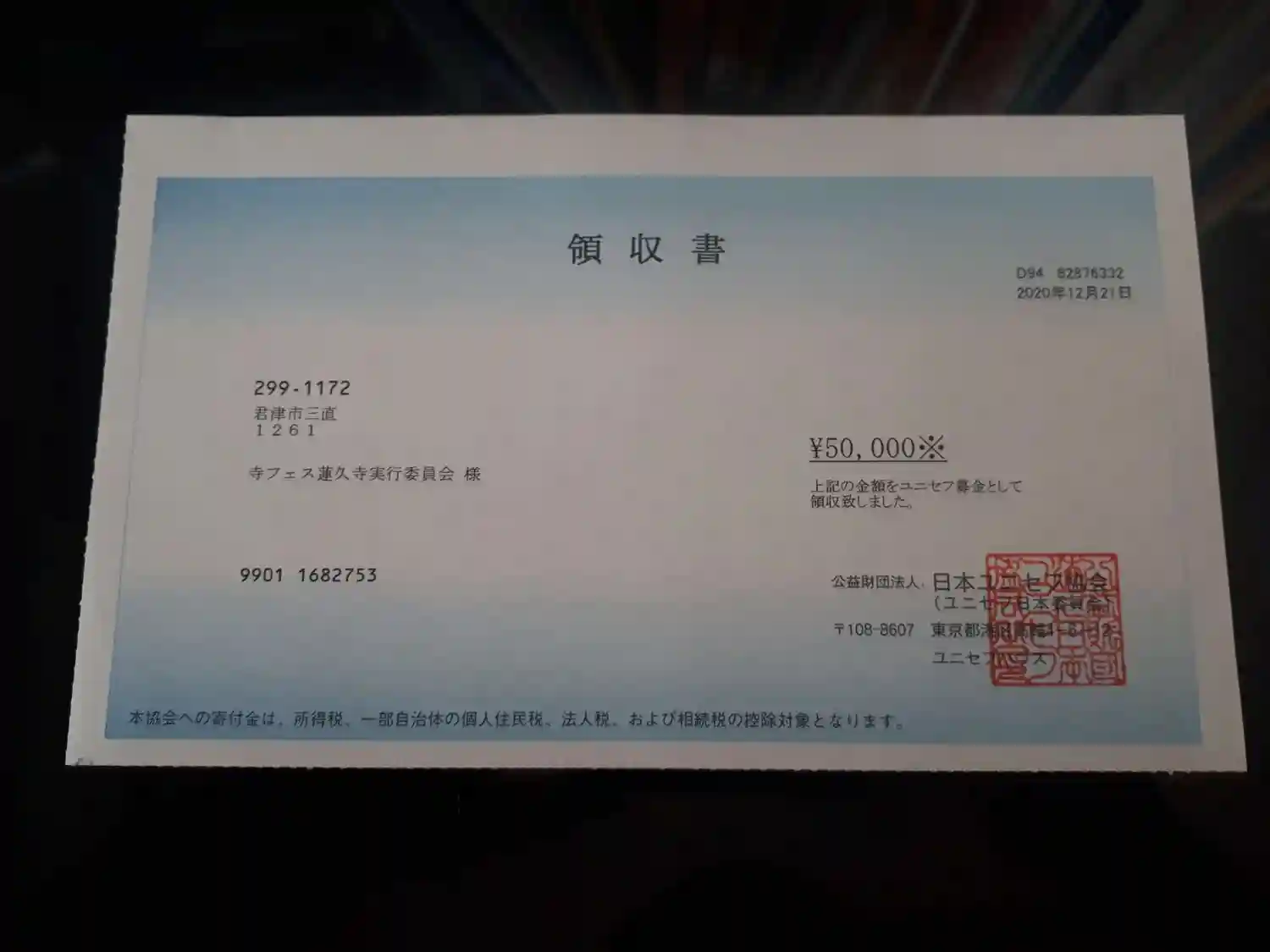 御朱印代は、新型コロナウイルス緊急支援募金に使わせていただきます