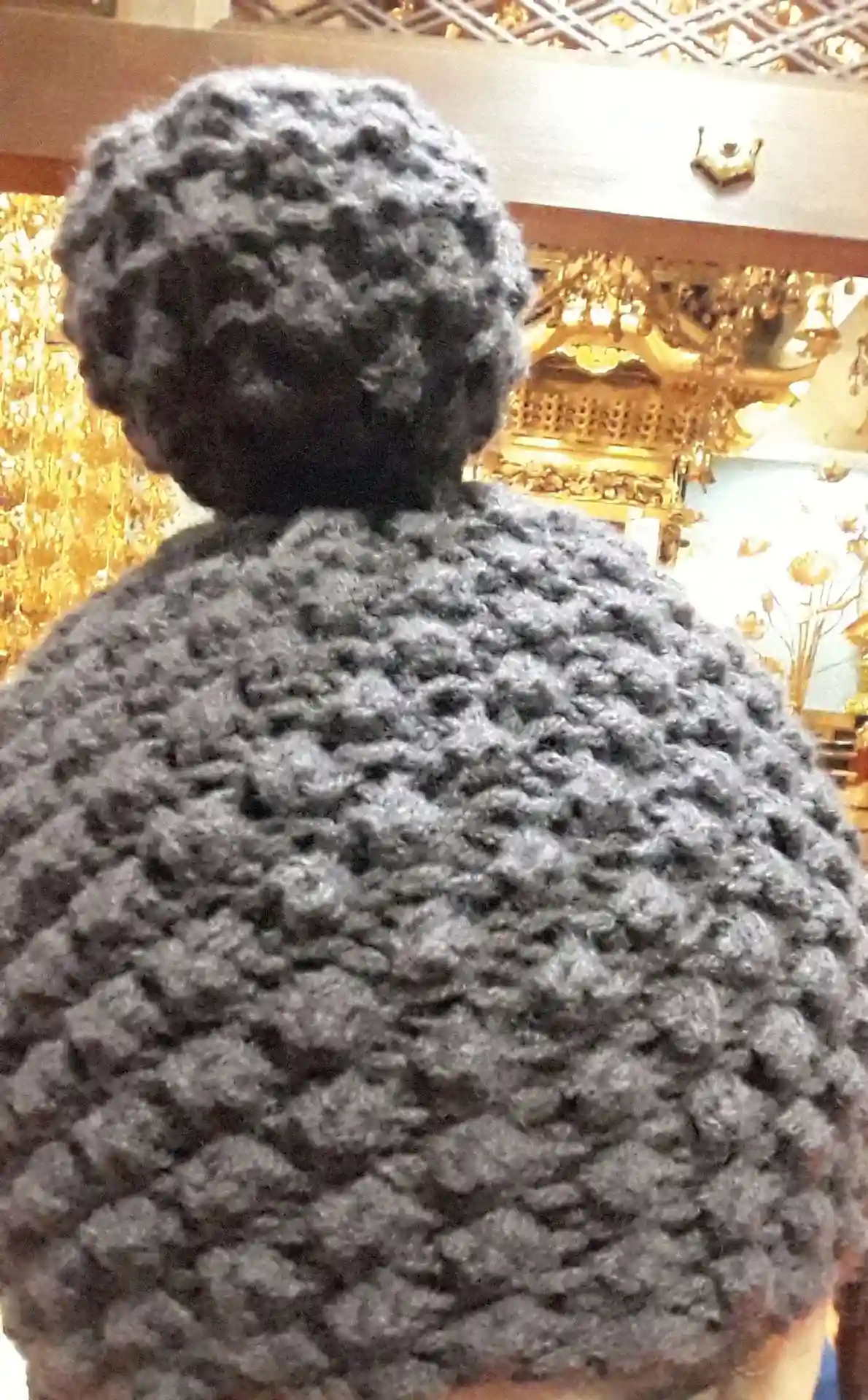 仏さまの丸まった髪の毛、らほつを表しているニットキャップ ちとわかりづらいか(^^ゞ