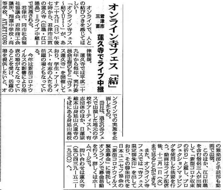 明日開催致します、オンライン寺フェスの記事が、新千葉新聞さんに掲載さ…