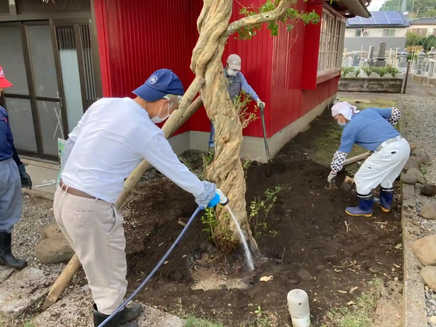 本日は、井戸を埋めるため、お祓いのお経をあげました。