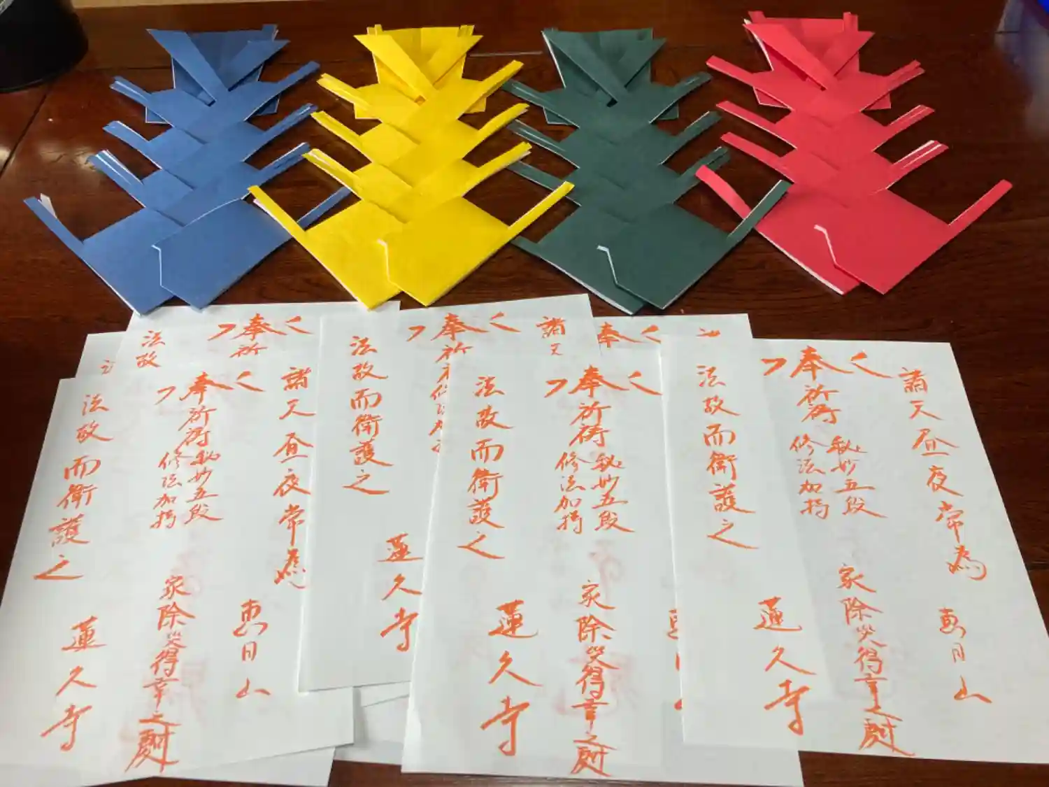 お札を書いて、幣束を切って折って…