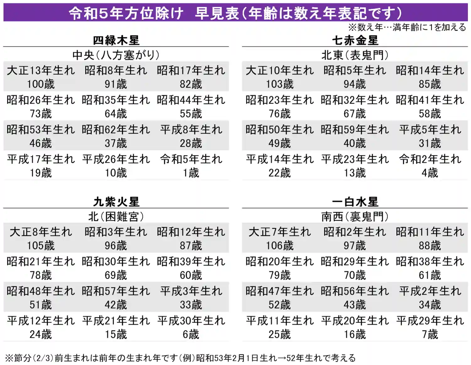 方位除は、九星星回りによる方位厄のことで、今年本命星が凶方に位置する…
