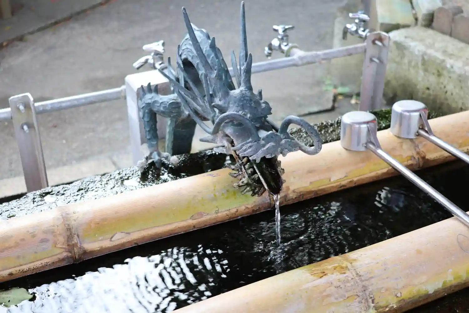手水舎の裏に御神水の蛇口があります✨