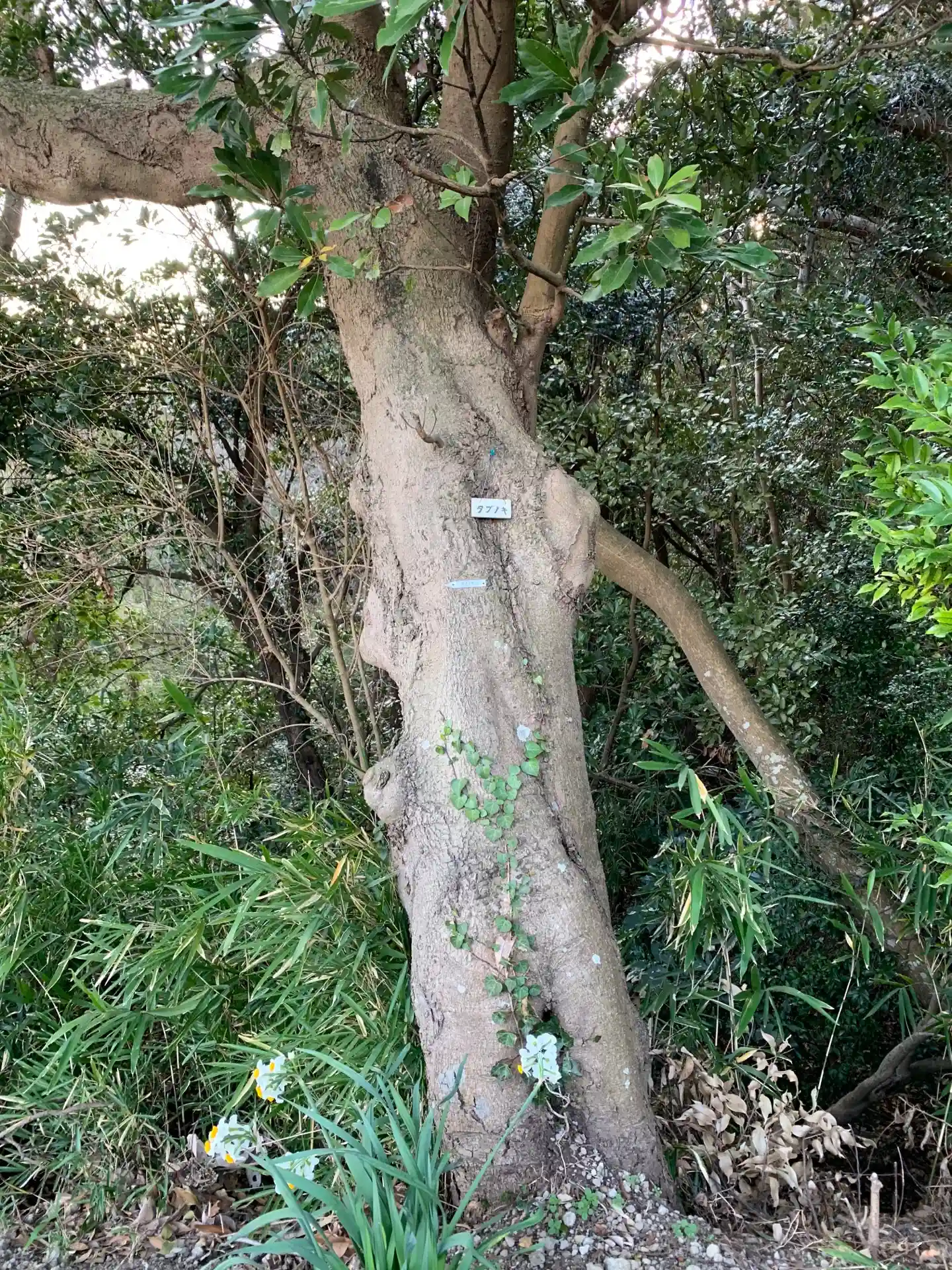 山頂付近にはスダジイの巨木が聳えています。高さも幅も申し分ない迫力を備えています。