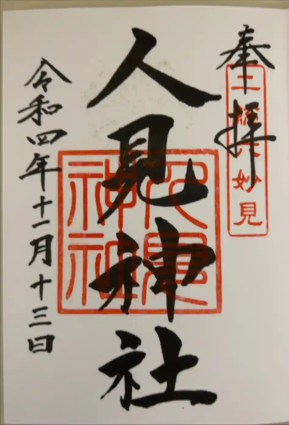 人見神社の御朱印・御朱印帳