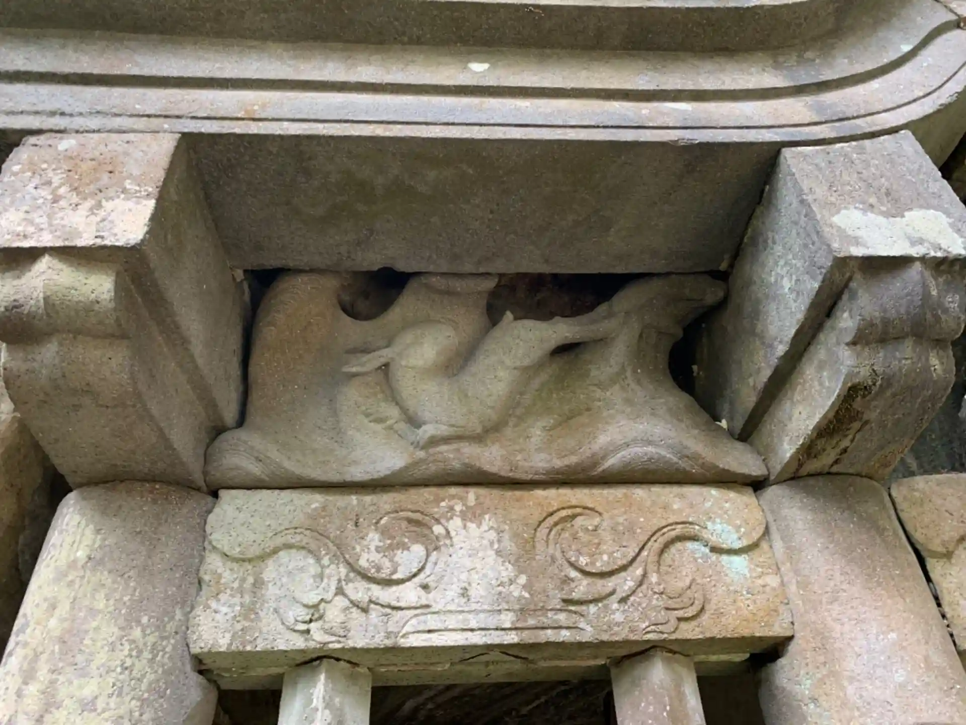 石切がツルハシによる手作業だった頃、職人が手遊びで猫を彫った物が残っています。
