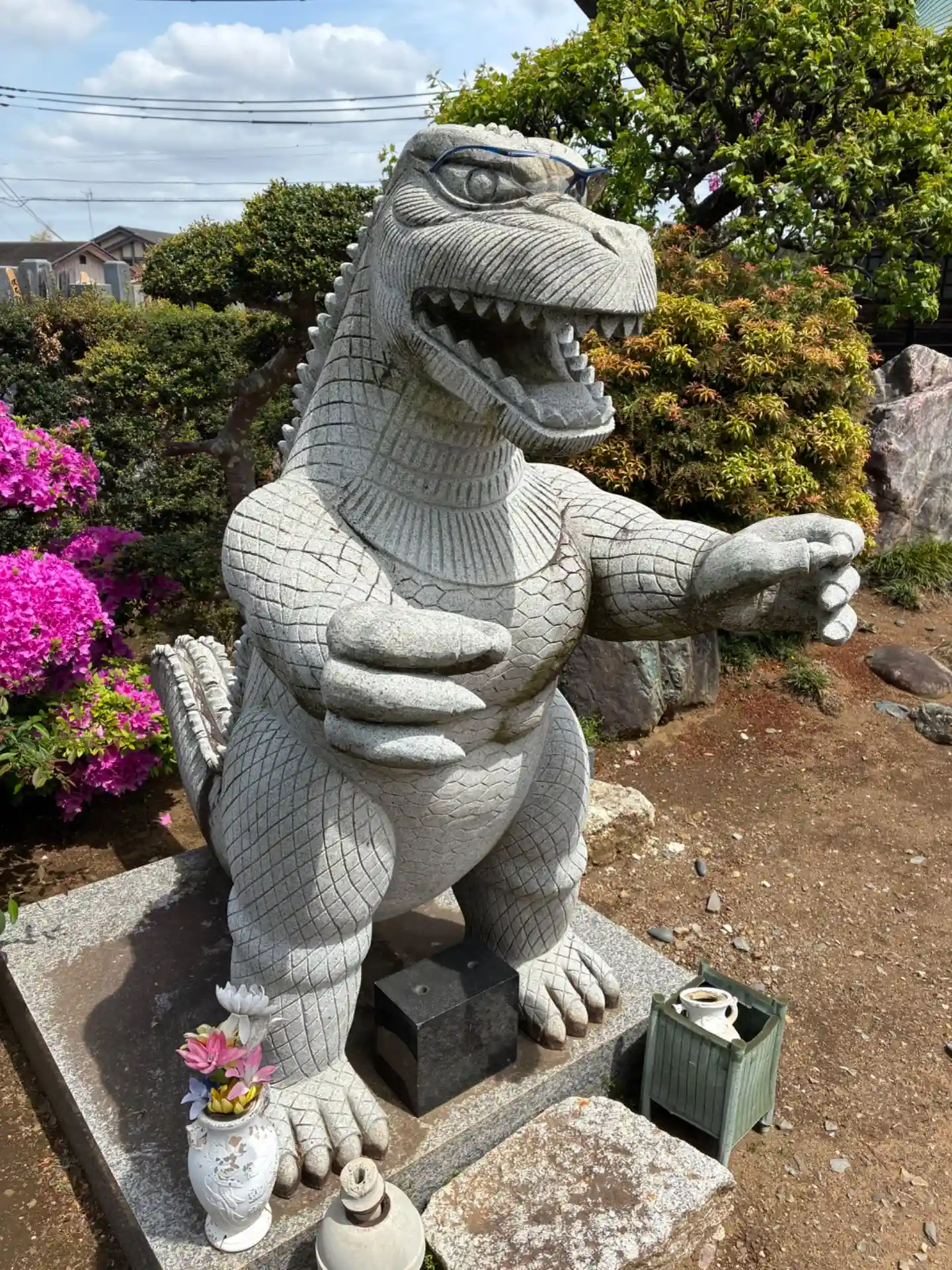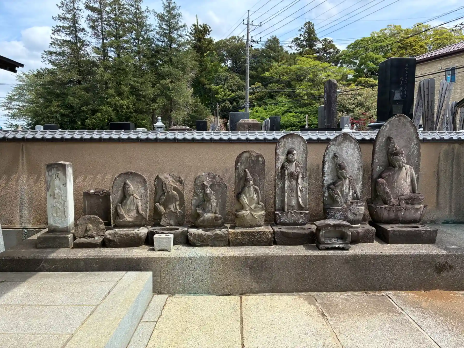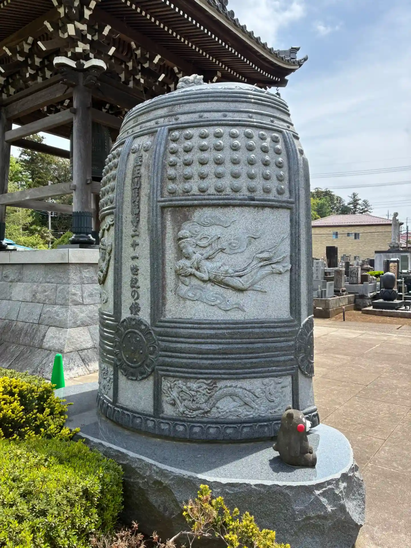 増尾村のお寺。色んなキャラクターの石像物が置いてあって面白いです。