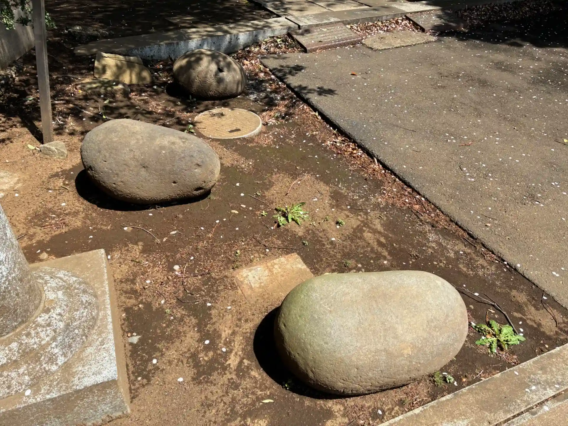 名都借村の鎮守。様々な石造物が整然と並んでいました。