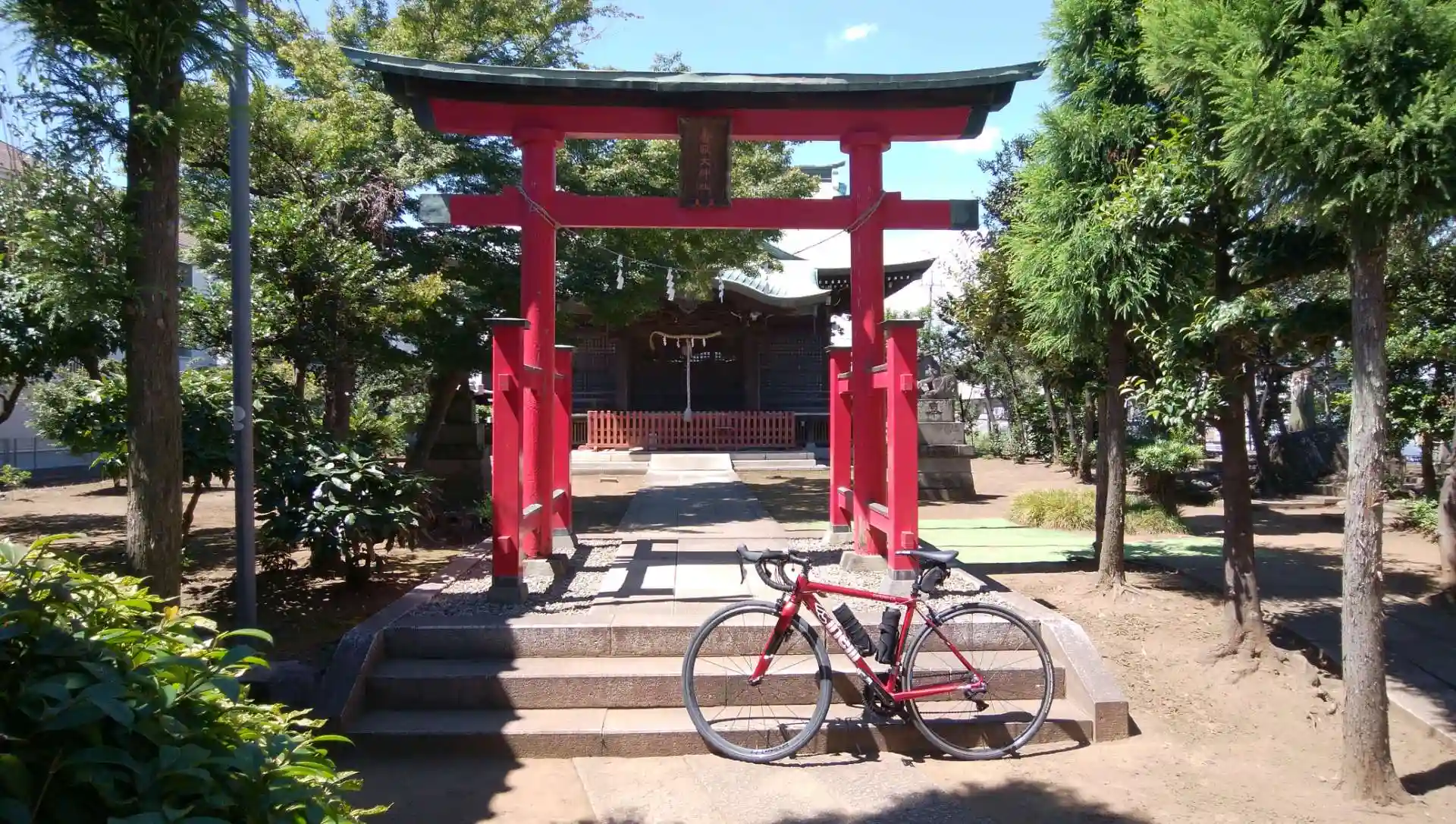 取手に向かう途中に巡りあった神社です。赤い鳥居が素敵です。