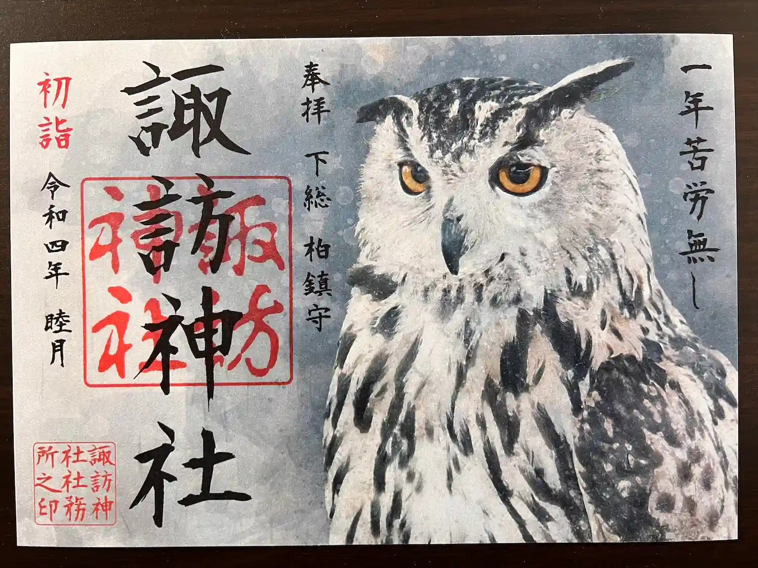 手水にアヒルの置物、授与品にもフクロウやハシビロコウの御守りや御朱印帳、御朱印が…、話によると神職が動物好きだそうですね。