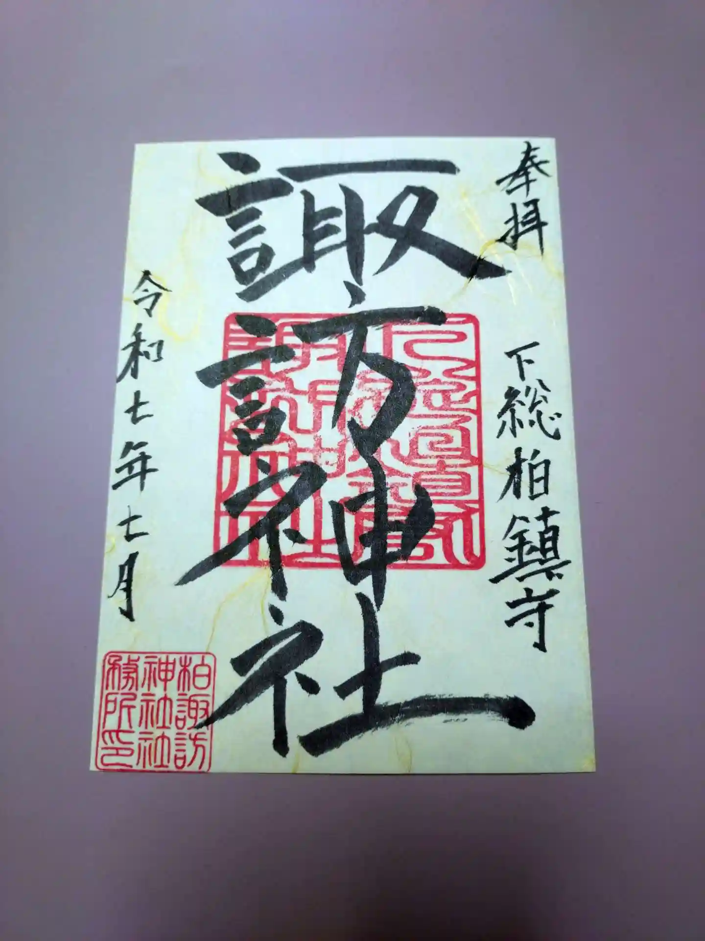 兼務社なので諏訪神社の御朱印の一部を柏神社で扱っているようです。