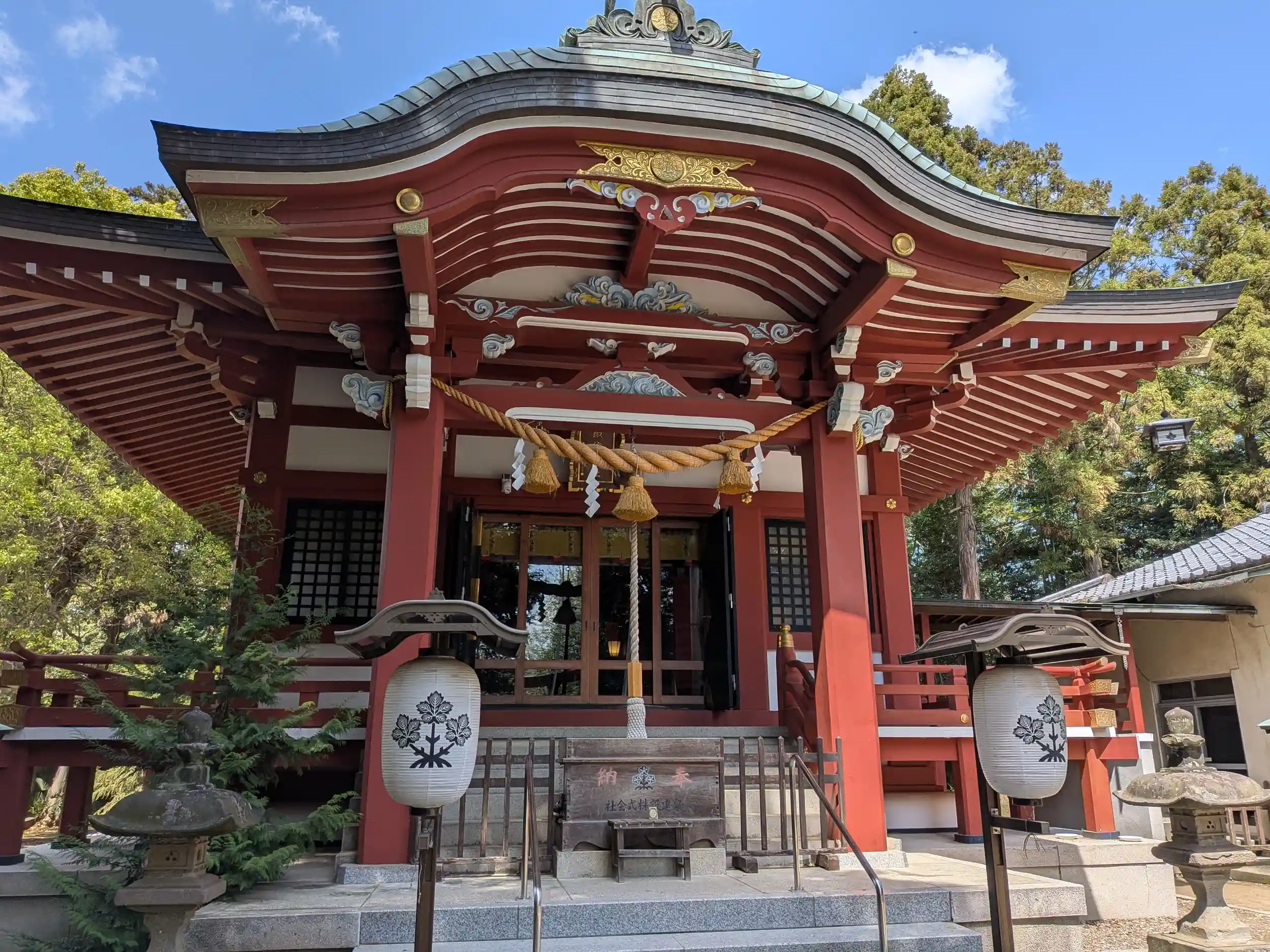 拝殿になります。青空と朱色の組合せ👍️