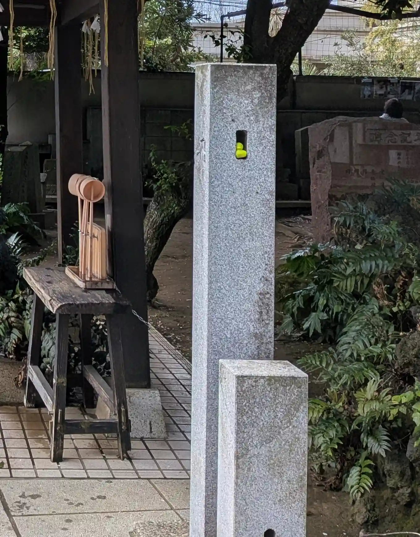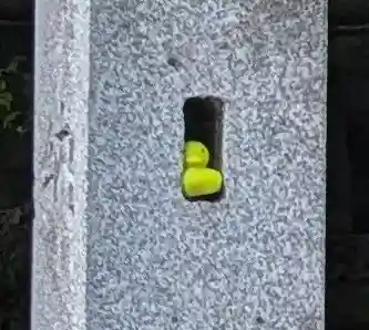 石柱に何か黄色いものが…